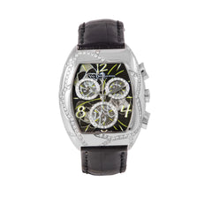 This Pre-owned Van Der Bauwede Lily Chronograph 36mm, steel case, silver dial, diamonds set on bezel and black leather strap is in very good condition. Mechanised by Van Der Bauwede calibre 251.471 quartz movement. Includes 2 years Timepiece360 warranty.