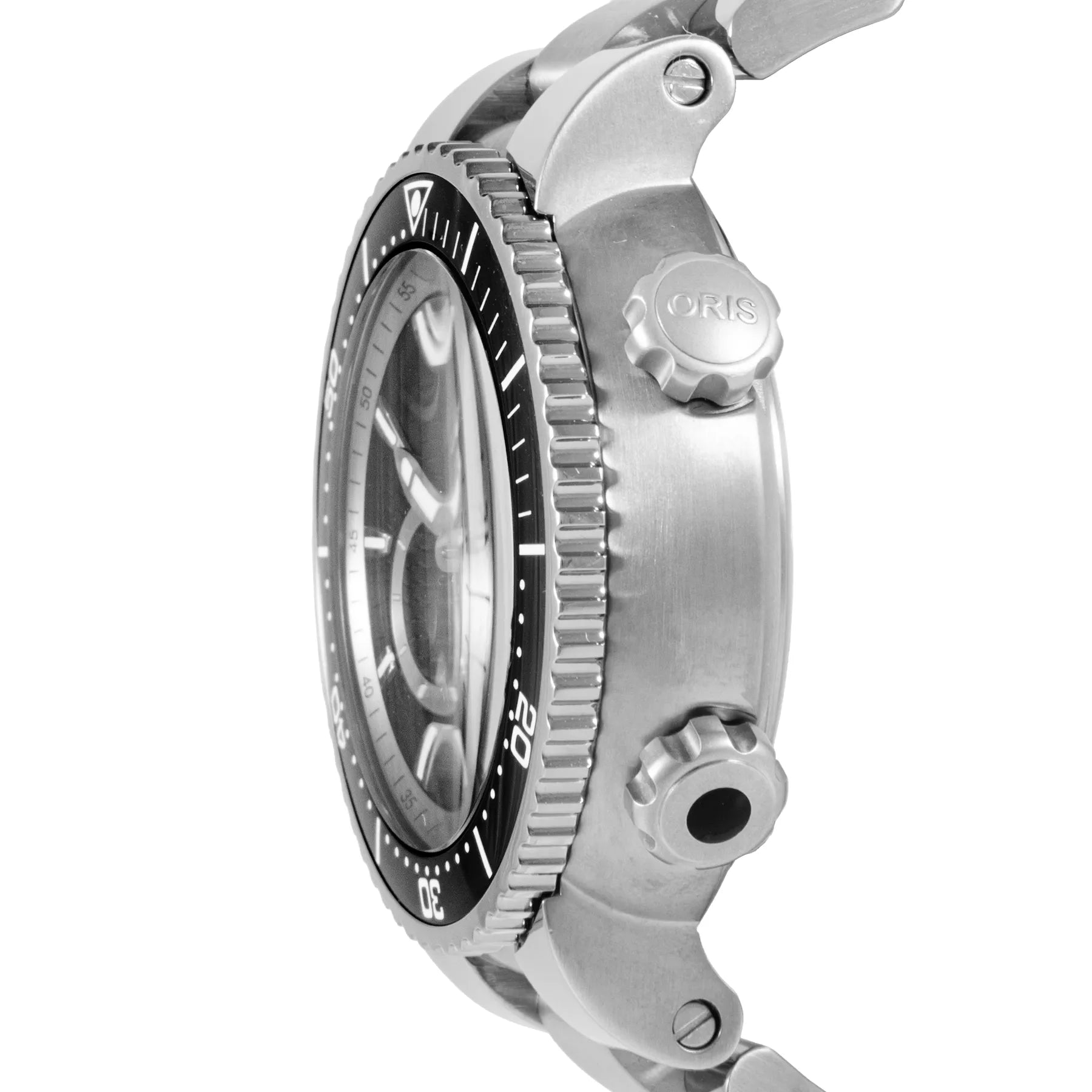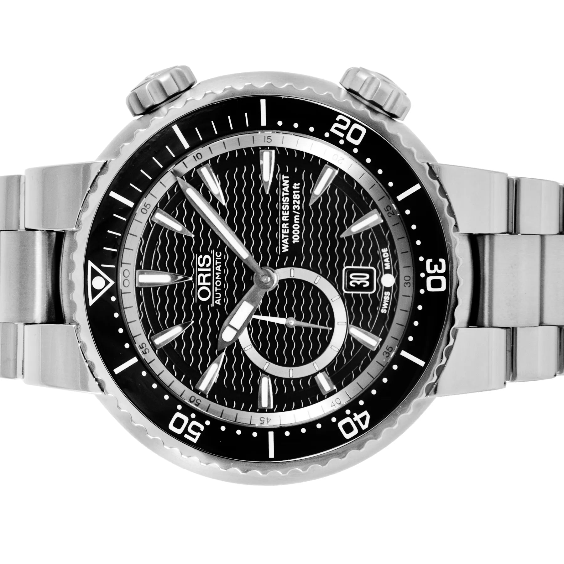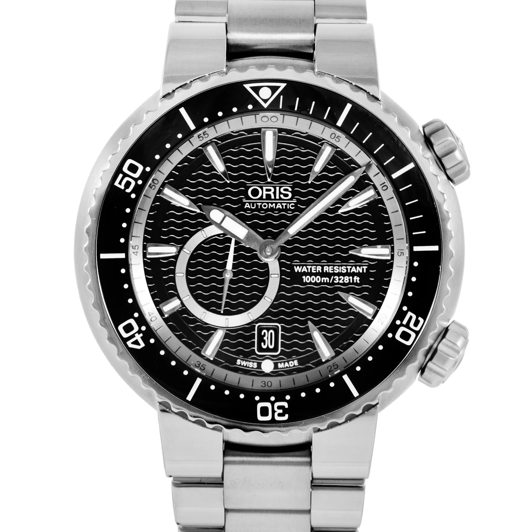 This Pre-owned Oris Divers Titan 'C' Small Second Date 47mm, titanium case, black dial, ceramic bezel and titanium bracelet with 9 links is in excellent condition. Mechanised by Oris calibre 643 automatic movement. Includes 2 years Timepiece360 warranty.