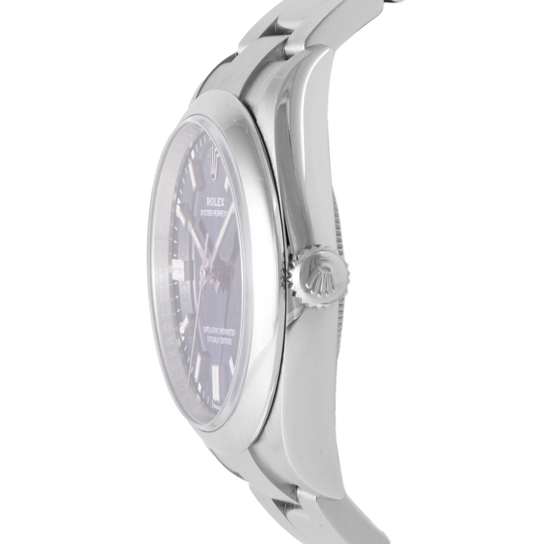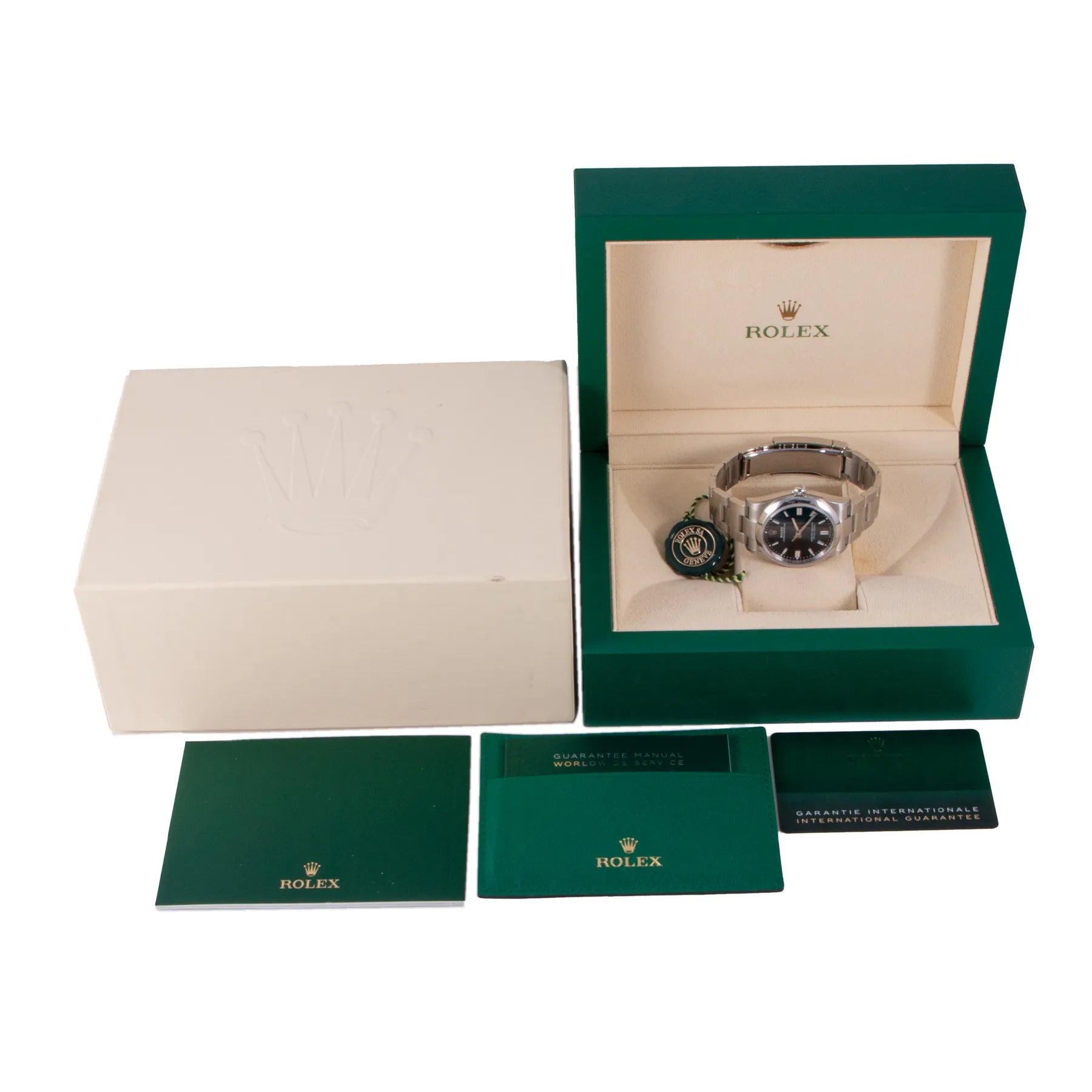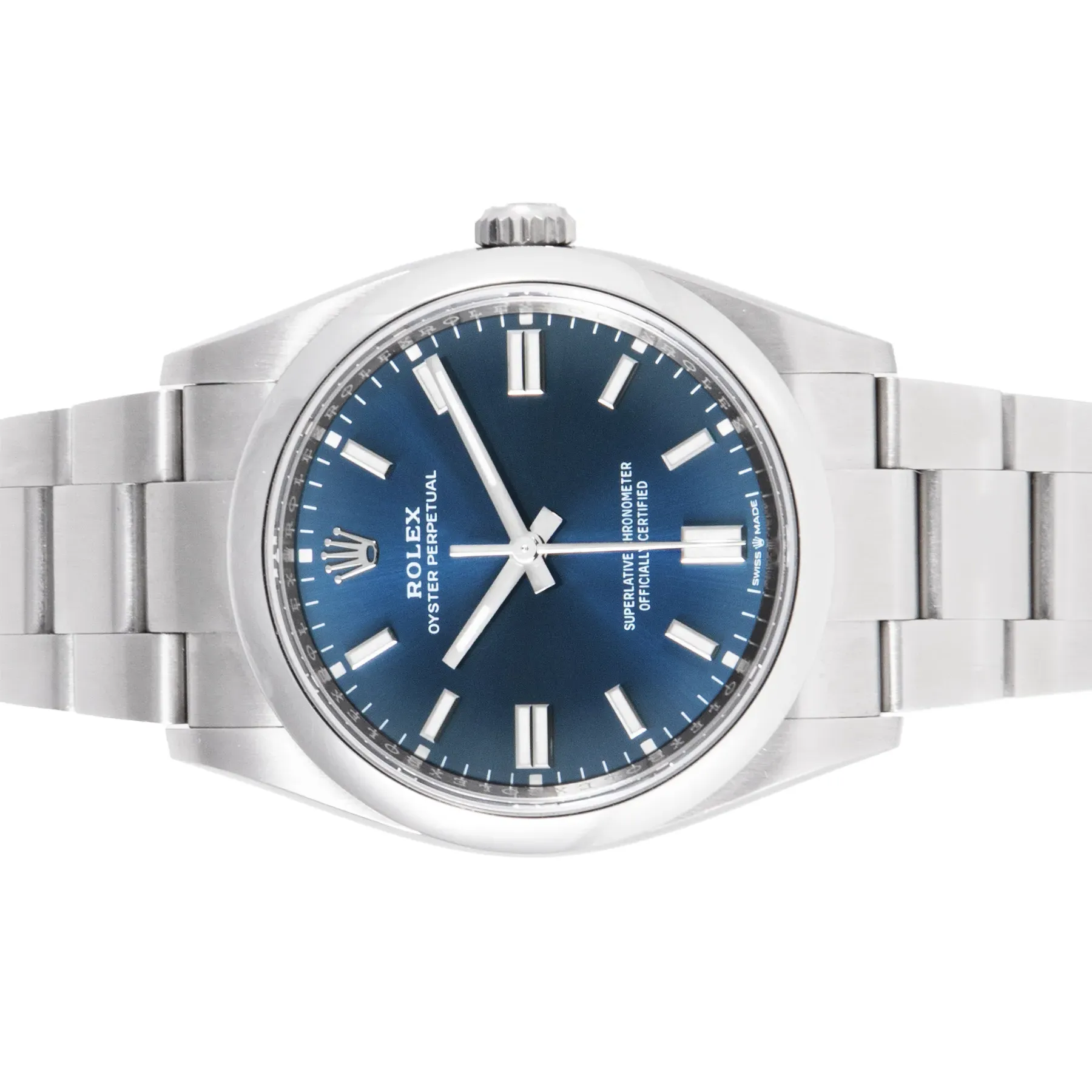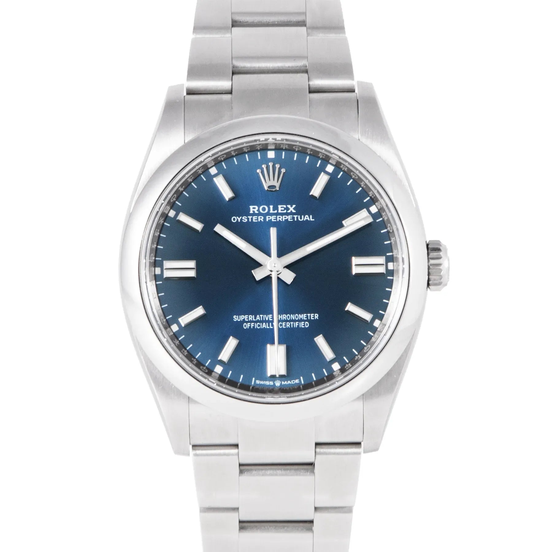 This Pre-owned Rolex Oyster Perpetual 36mm, steel case, blue dial, steel bezel and steel oyster bracelet with 12 links is in very good condition. Mechanised by Rolex calibre 3230 automatic movement. Includes box and sales warranty card dated July 2024.