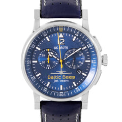 This Pre-owned De Motu R42 MK II 42mm, steel case, blue dial, steel bezel and blue leather strap is in excellent condition. Mechanized by De Motu Calibre quartz movement. Includes box, De Motu sales warranty card dated April 2018 and 2 years Timepiece360 warranty.