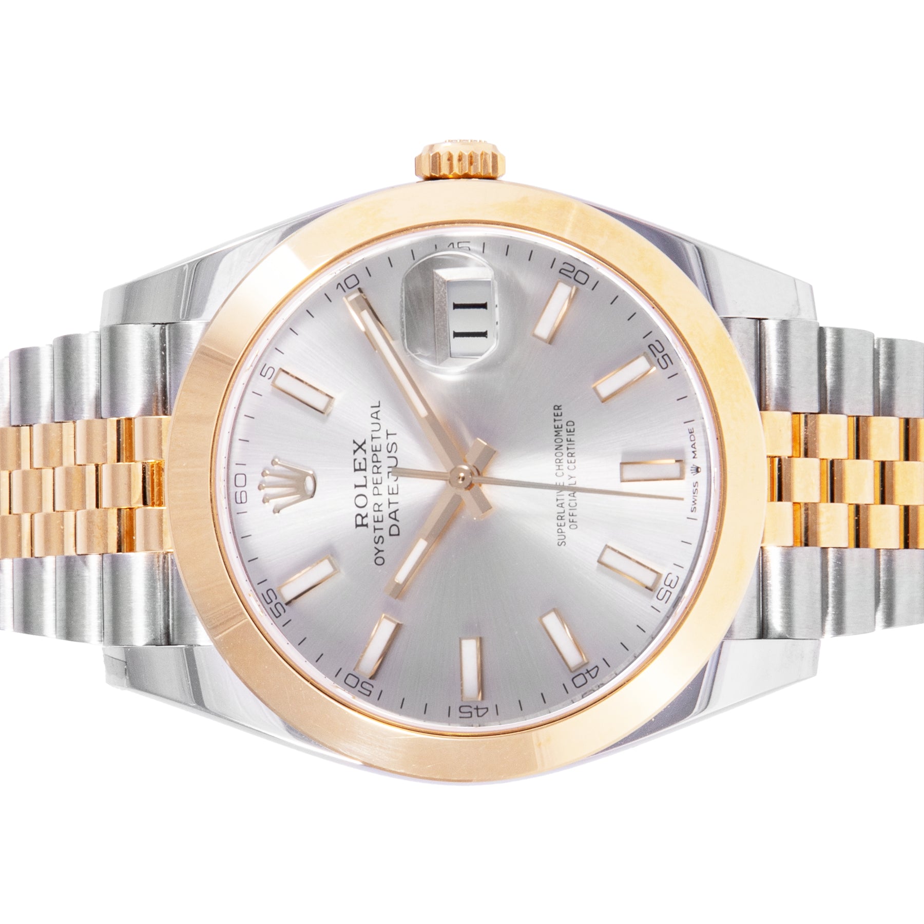 This Pre-owned Rolex Datejust 41mm, steel & yellow gold case, silver dial, yellow gold bezel and steel & yellow gold jubilee bracelet with 20 links is in excellent condition. Mechanised by Rolex calibre 3235 automatic movement. Includes box and Rolex sales warranty card dated July 2025.
