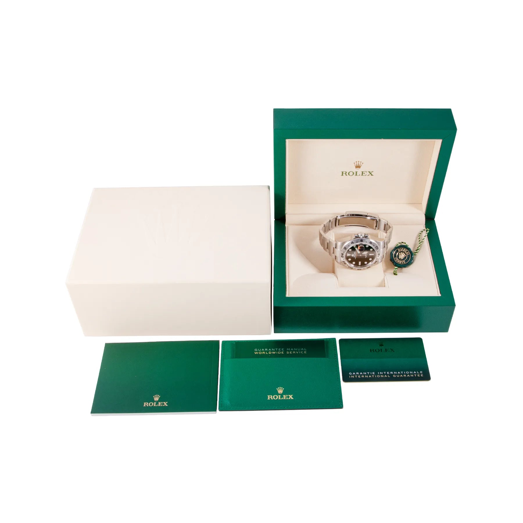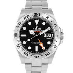 This Pre-owned Rolex Explorer II 42mm, steel case, black dial, steel bezel and steel bracelet with 12 links is in excellent condition. Mechanised by Rolex calibre 3187 automatic movement. Includes box and sales warranty card dated September 2022.