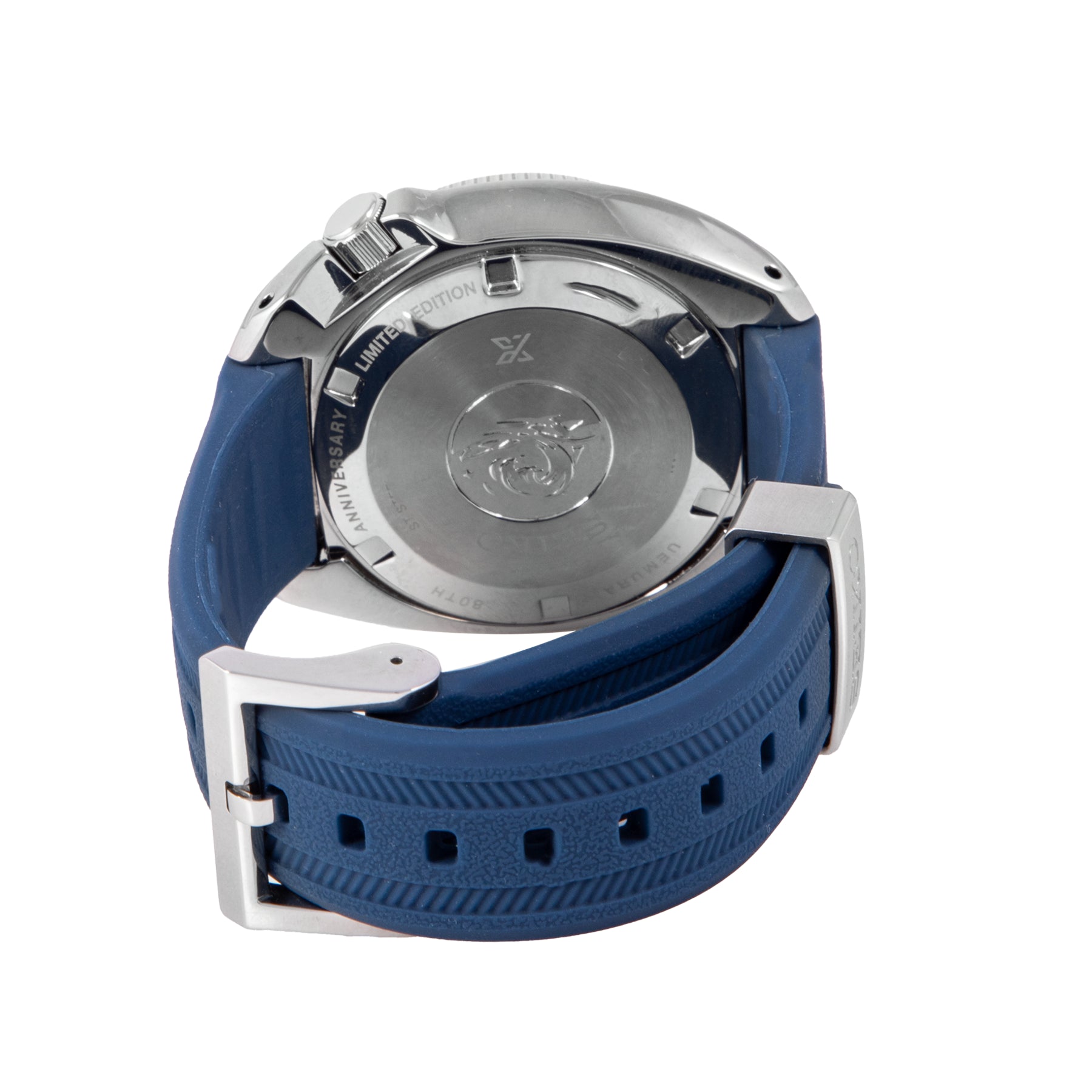 This Pre-owned Seiko Prospex Naoki Uemura 80th Anniversary Diver Scuba 44mm, steel case, blue dial, steel bezel and blue rubber strap is in excellent condition. This watch is Limited Edition to 1200 pieces. Mechanised by Seiko calibre 8L35B automatic movement. Includes box, extra steel bracelet, undated sales warranty card, and 2 years Timepiece360 warranty.