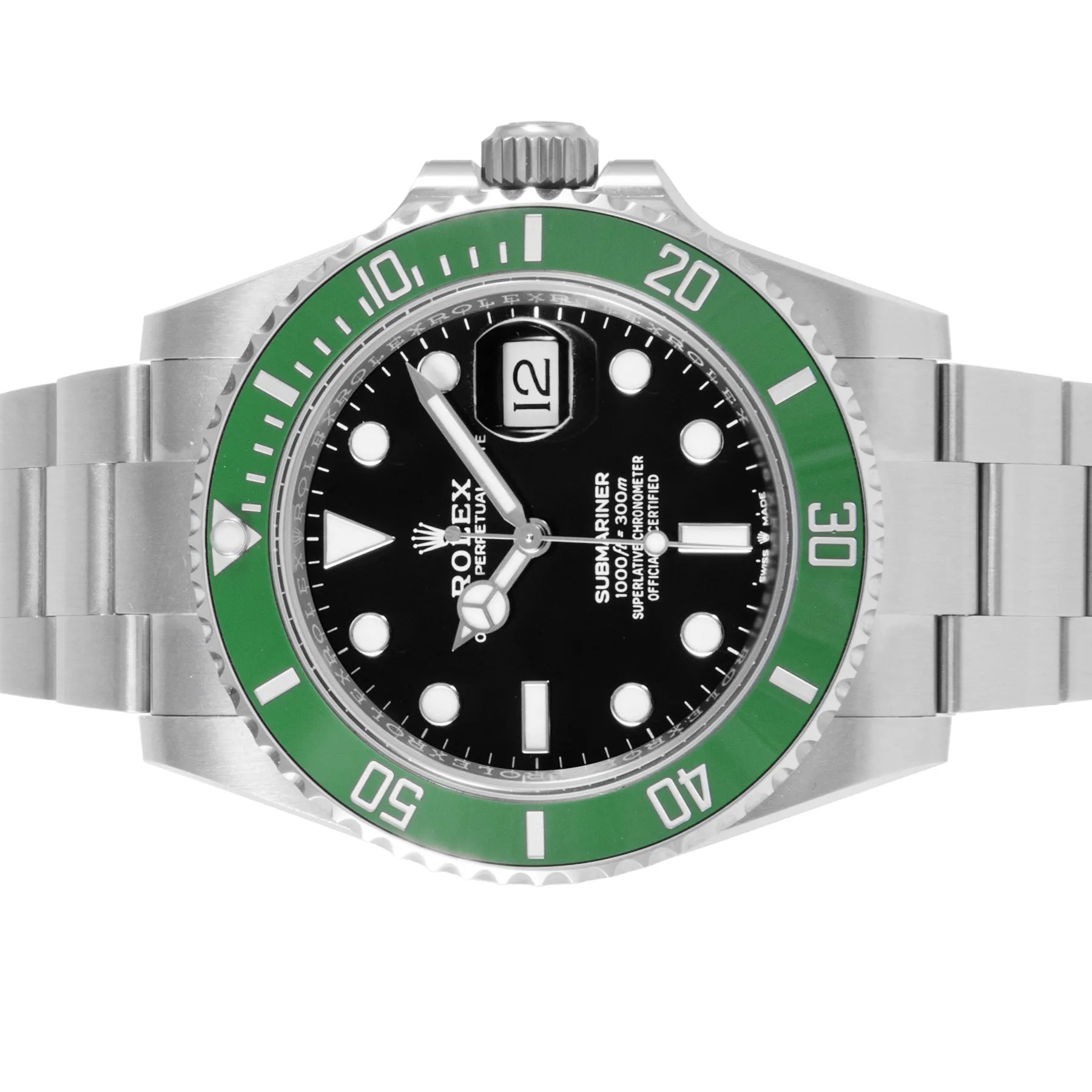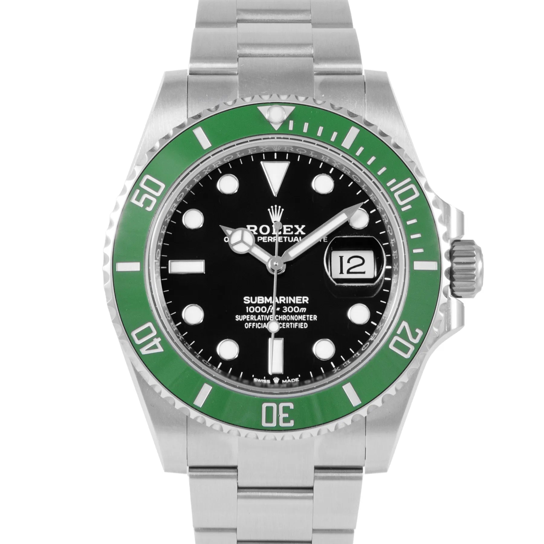 This Rolex Submariner Date "Starbucks" MK2 41mm, steel case, black dial, ceramic bezel and steel oyster bracelet with 11 links in unworn condition. Mechanised by Rolex calibre 3235 automatic movement. Includes box and sales warranty card dated August 2025.