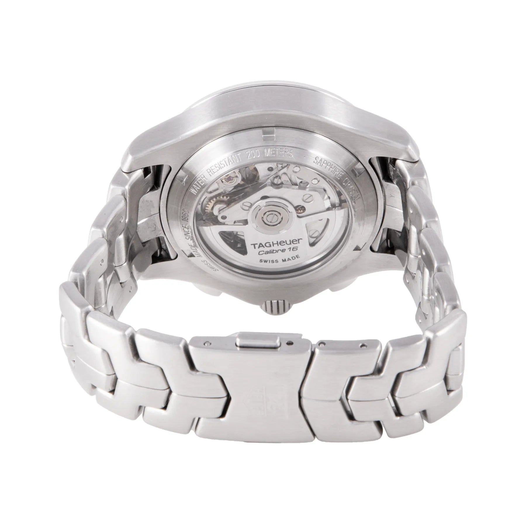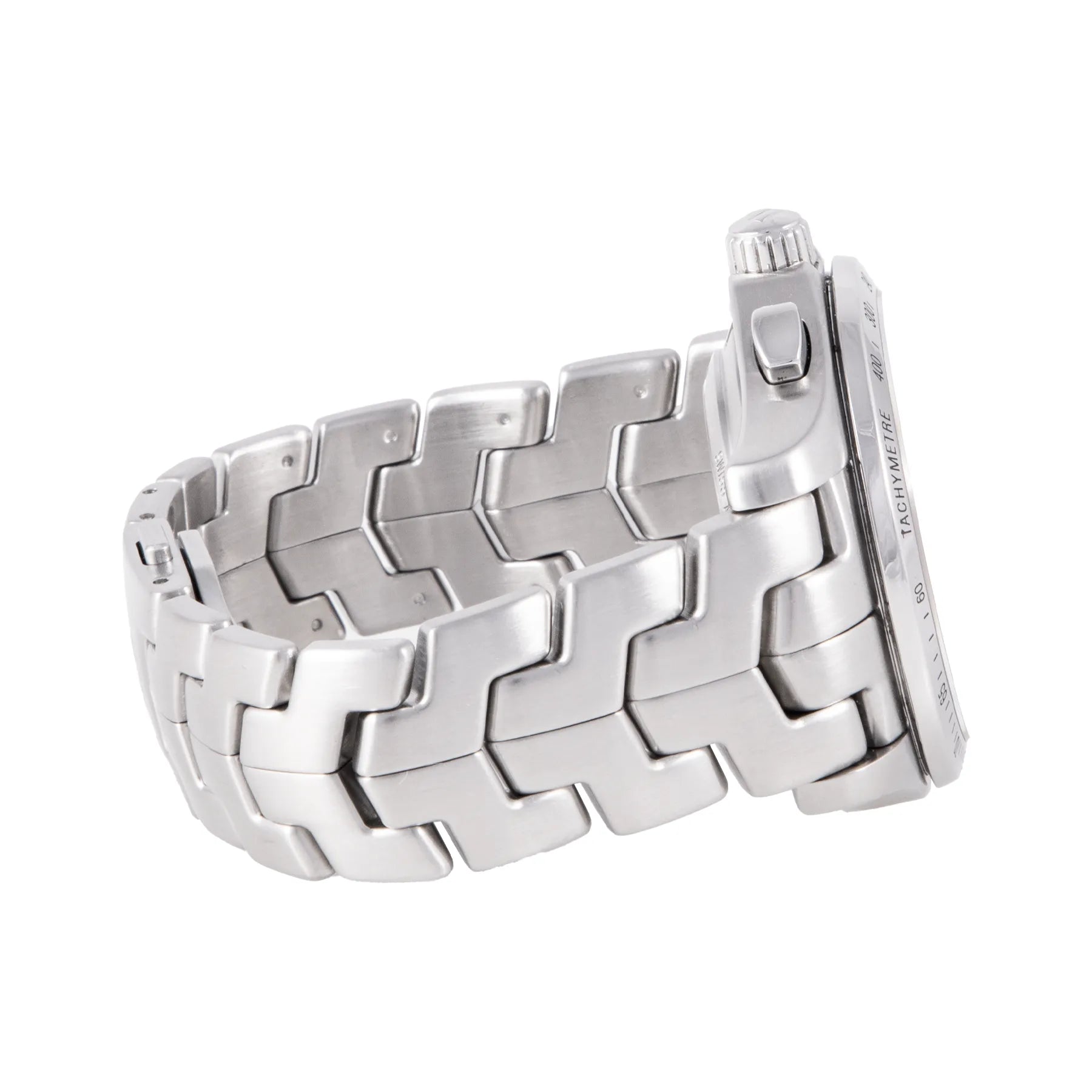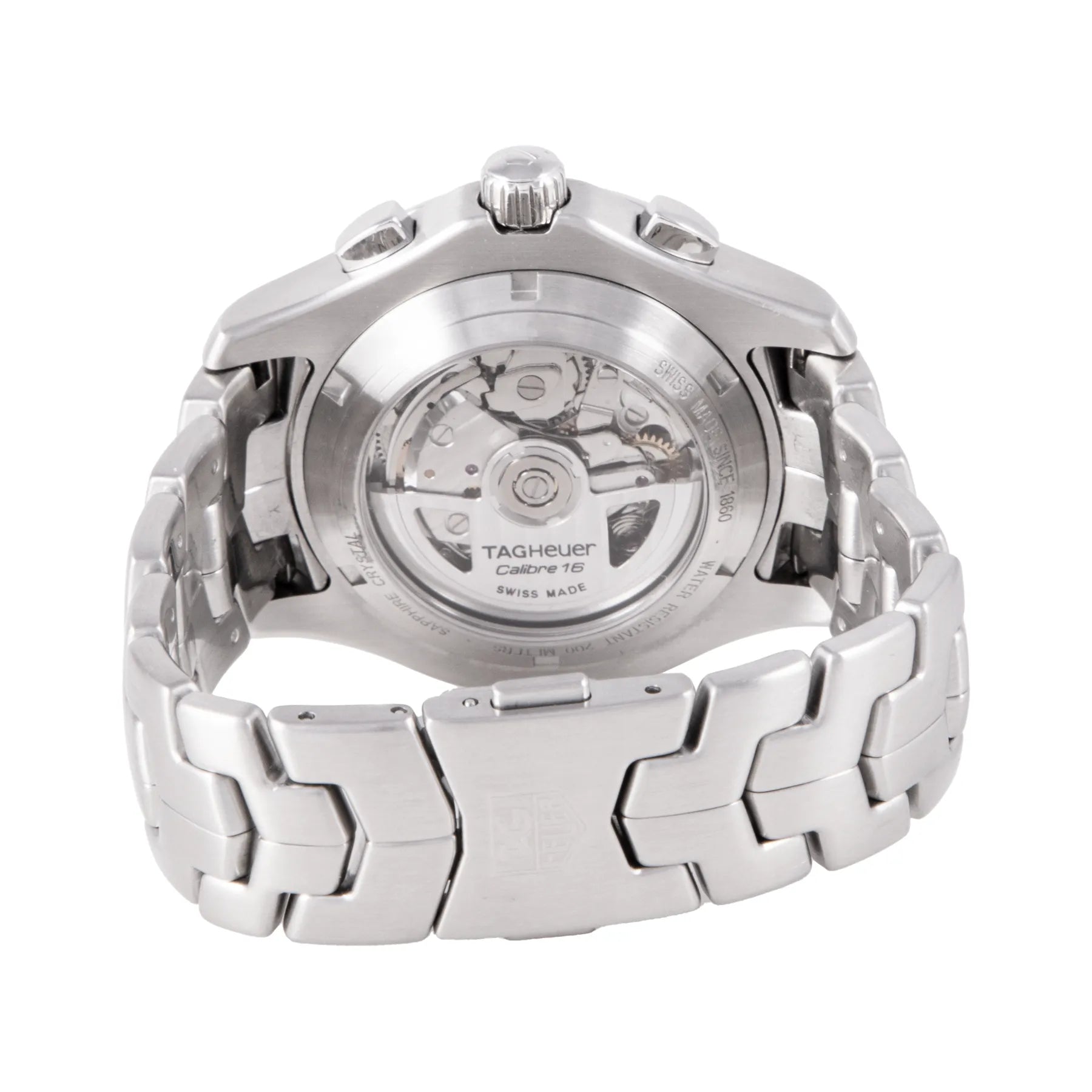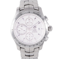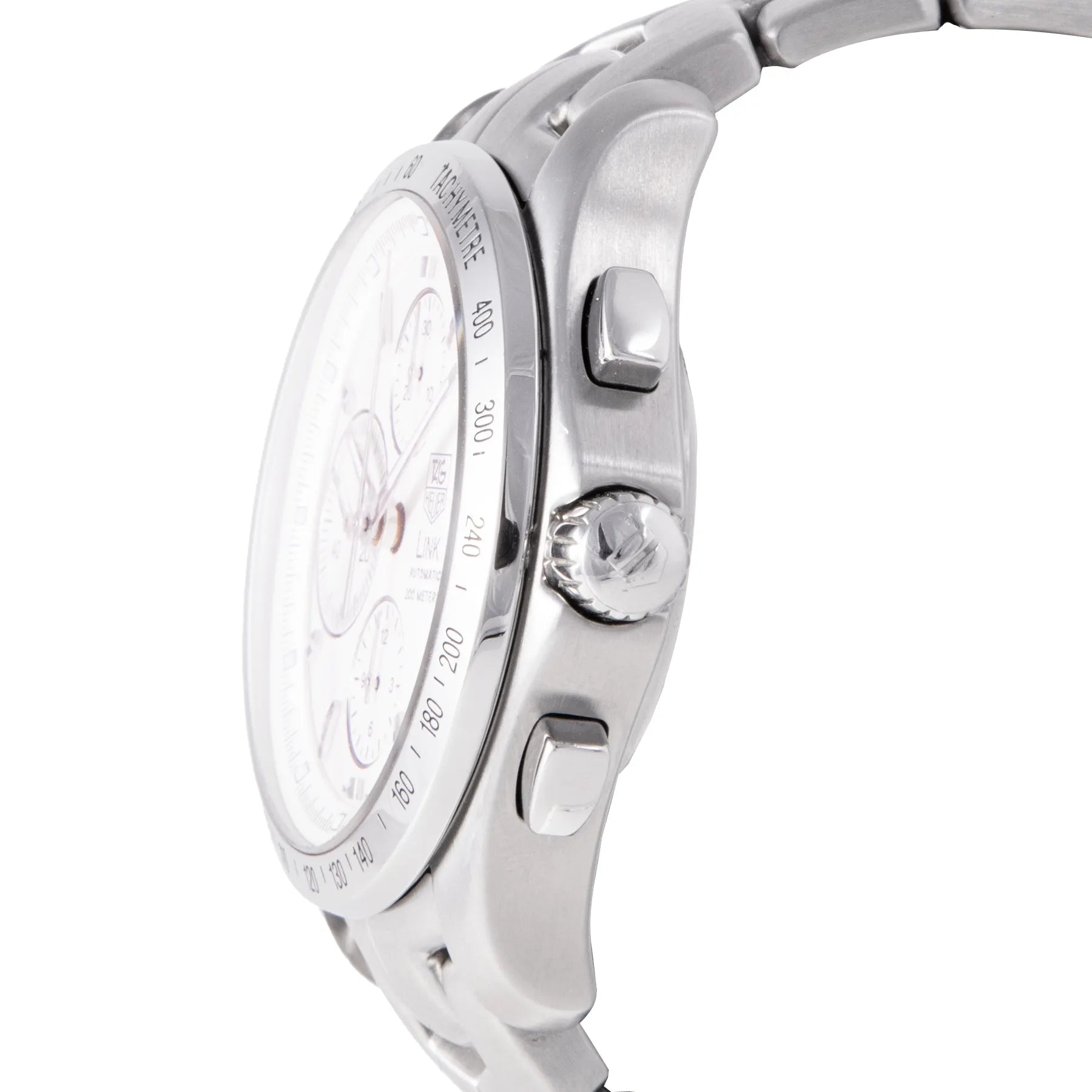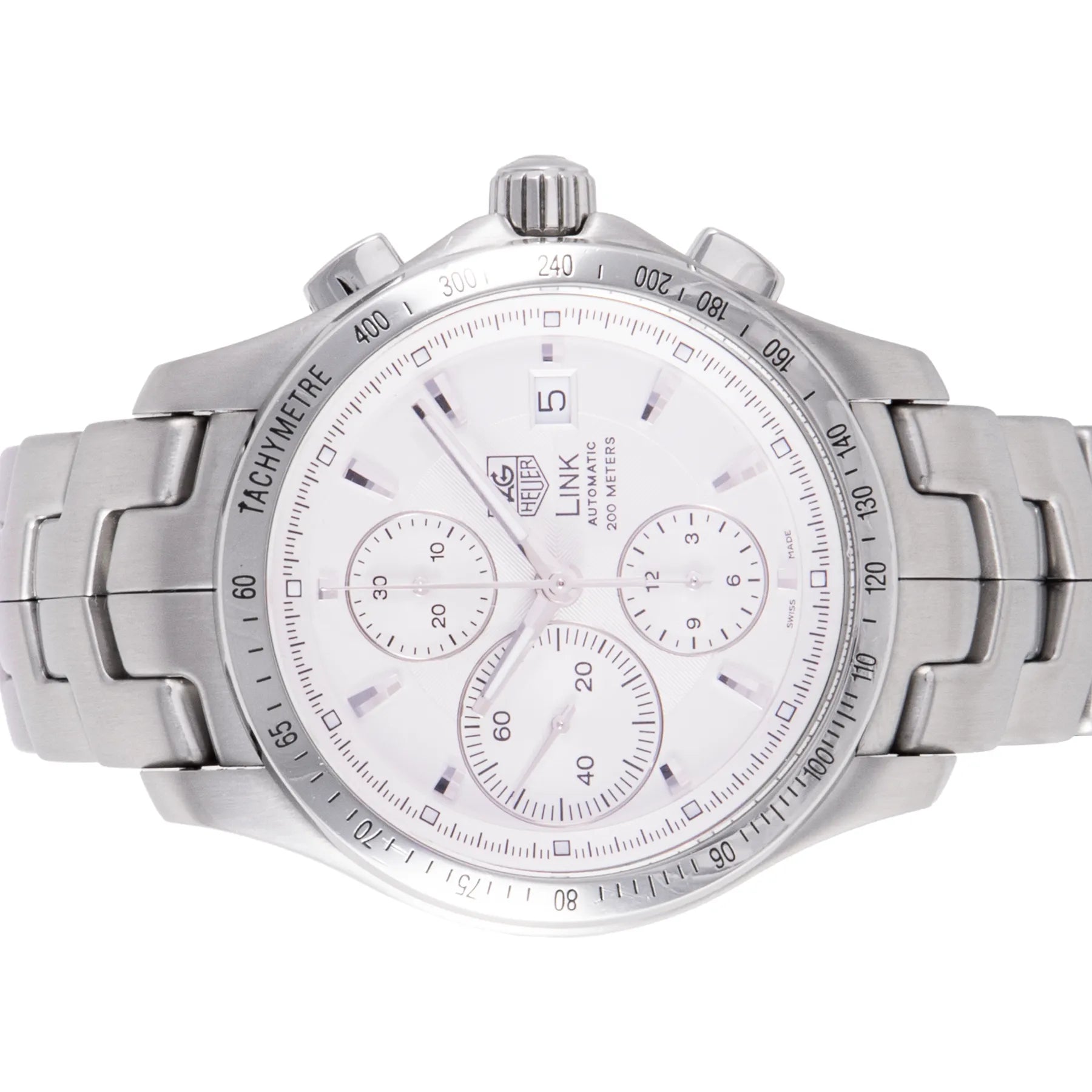 This Pre-owned TAG Heuer Link Automatic Chronograph 42mm, steel case, silver dial, steel bezel and steel bracelet with 11.5 links is in very good condition. Mechanised by TAG Heuer calibre 16 automatic movement. Includes 2 years Timepiece360 warranty.