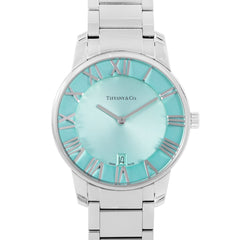 This Pre-owned Tiffany & Co Atlas 37.5mm, steel case, blue dial, steel bezel and steel bracelet with 15 links is in very good condition. Mechanised by Tiffany & Co calibre Ronada R9 quartz movement. Includes box, sales warranty card dated November 2021 and 2 years Timepiece360 warranty.