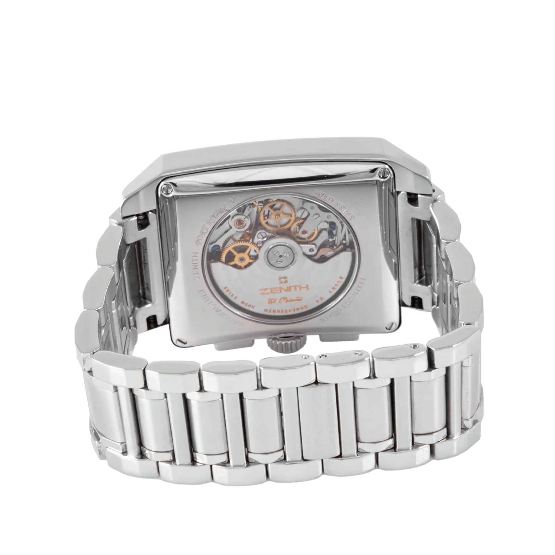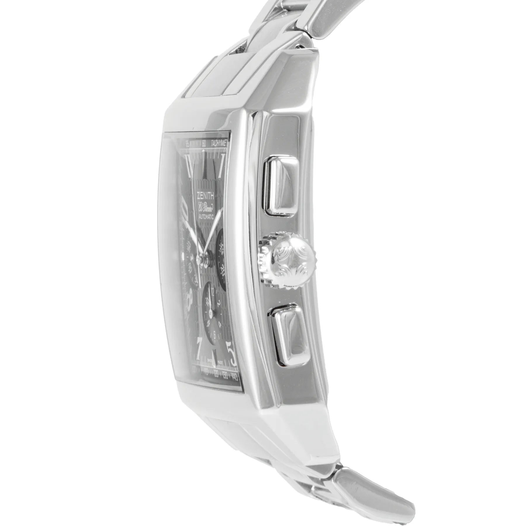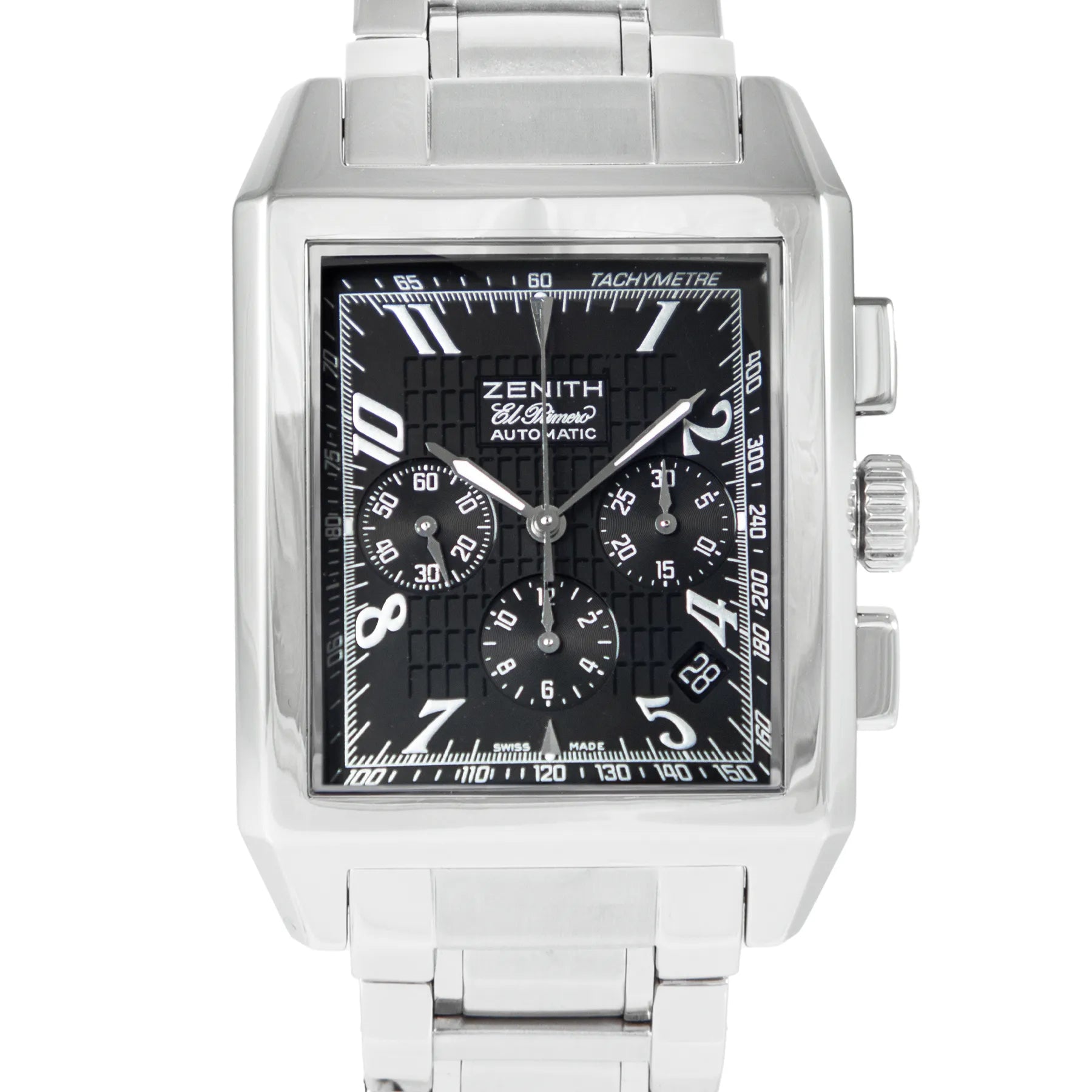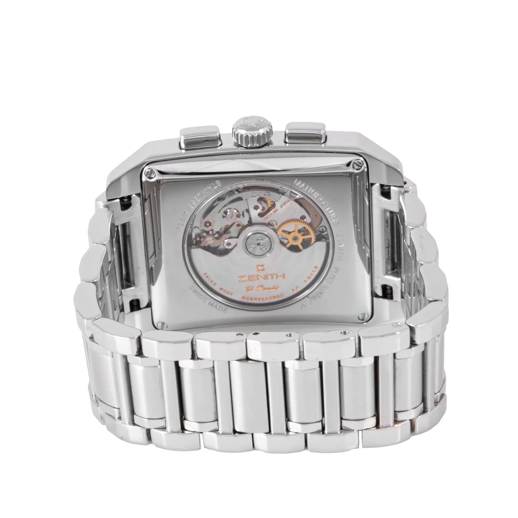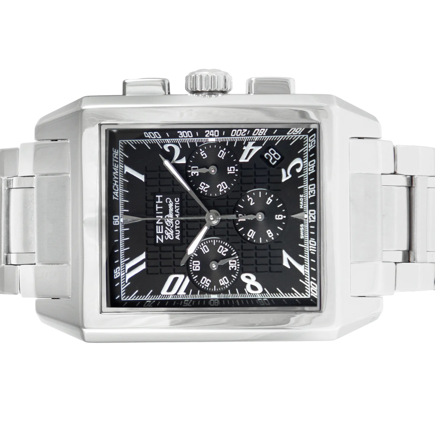 This Pre-owned Zenith Grande Port Royal El Primero Chrono 51mm x 36mm, steel case, black dial, steel bezel and steel bracelet with 11 links is in excellent condition. Mechanised by Zenith calibre 400Z automatic movement. Includes 2 years Timepiece360 warranty.