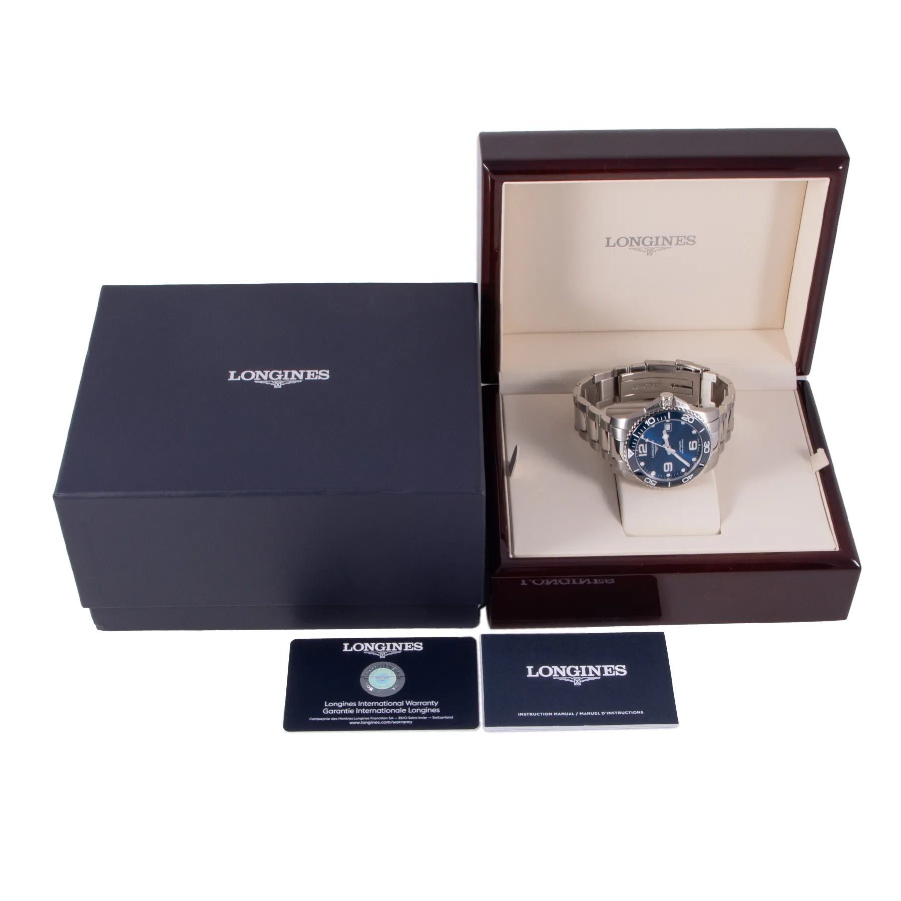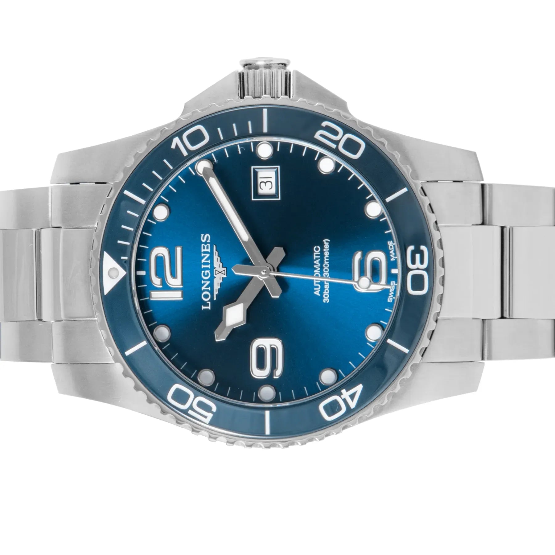 This Pre-owned Longines Hydroconquest 41mm, steel case, blue dial, ceramic bezel and steel bracelet with 10.5 links is in excellent condition. Mechanised by Longines calibre L888.5 automatic movement. Includes box and Longines sales warranty card dated May 2025.