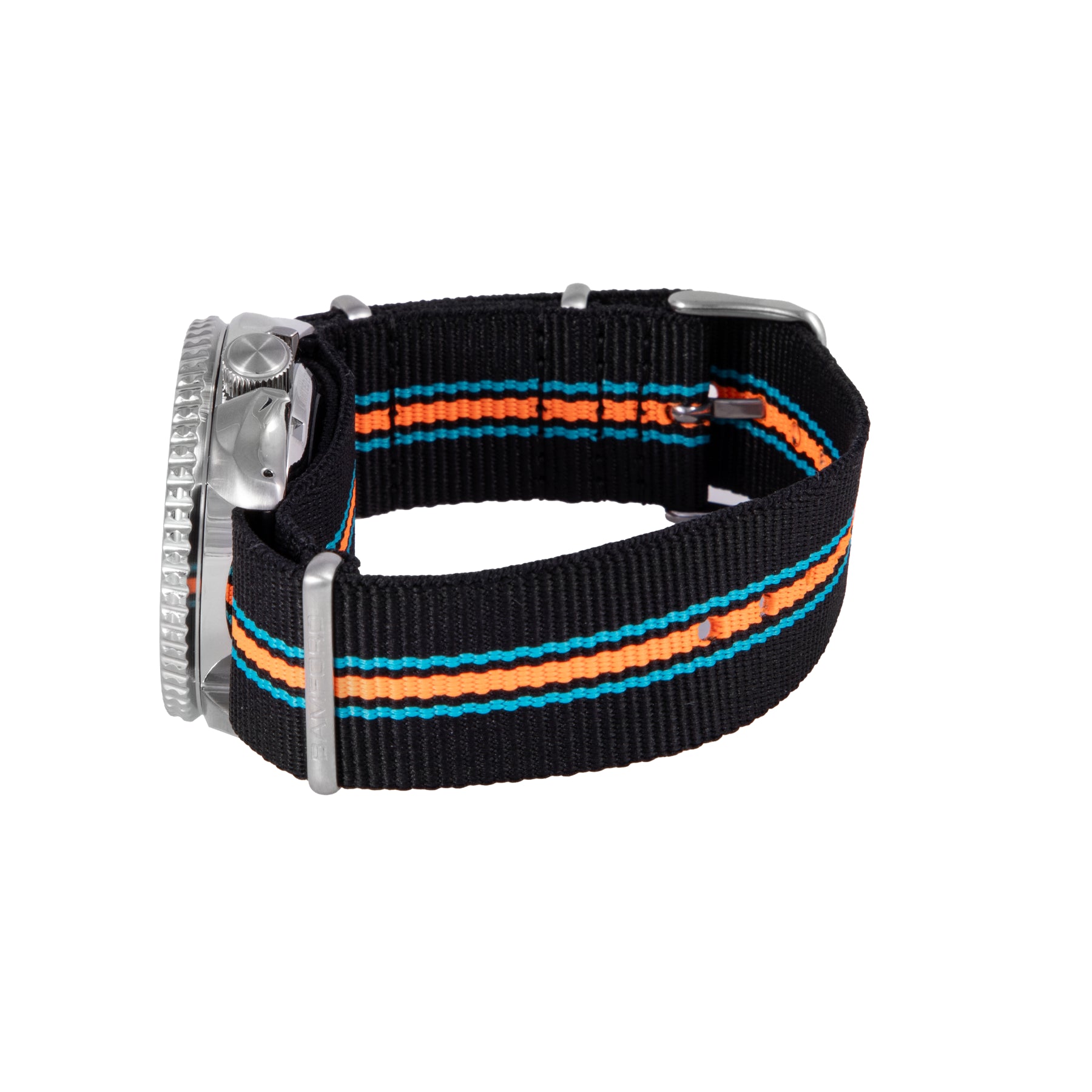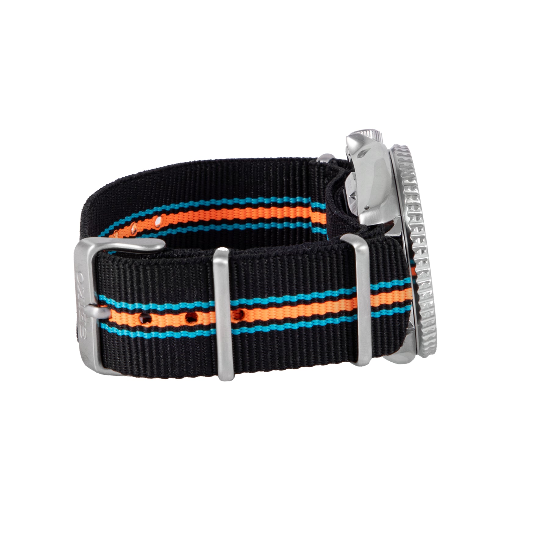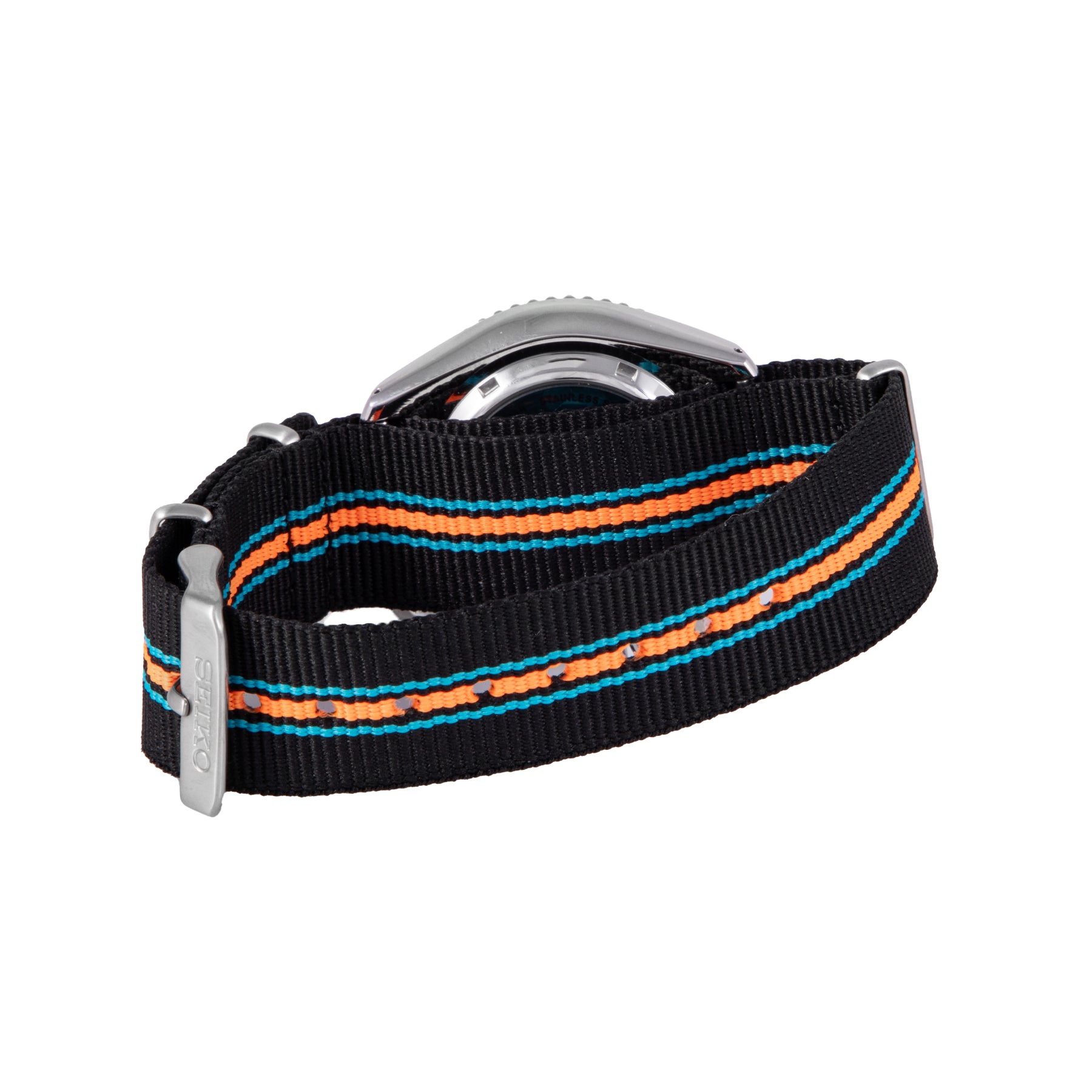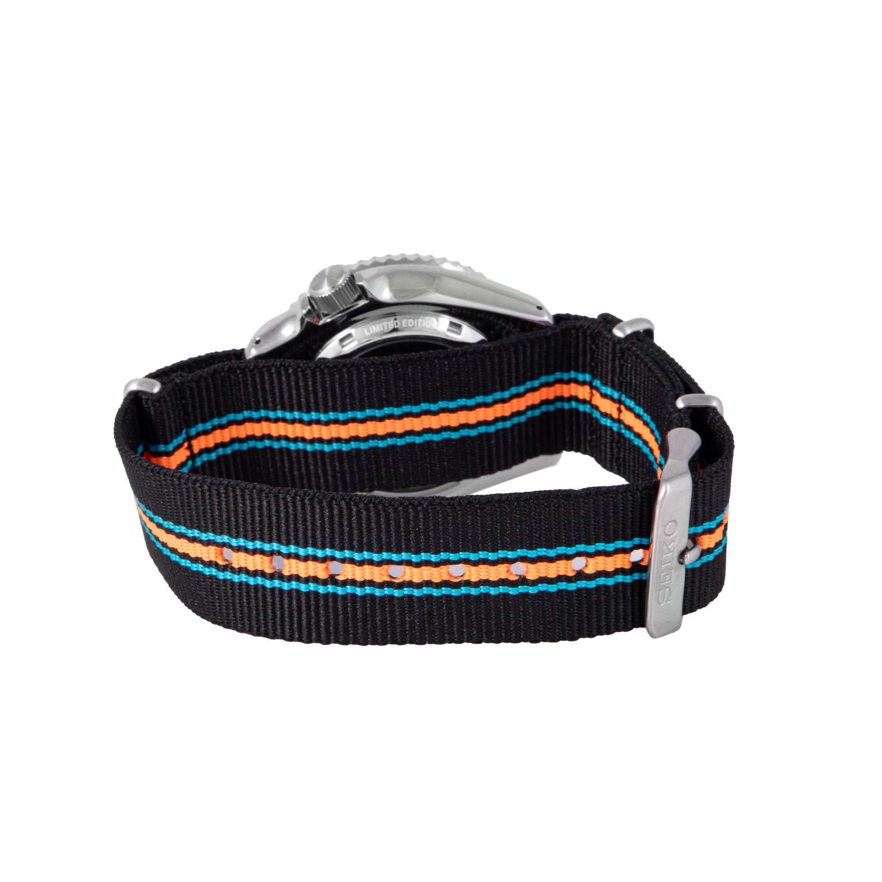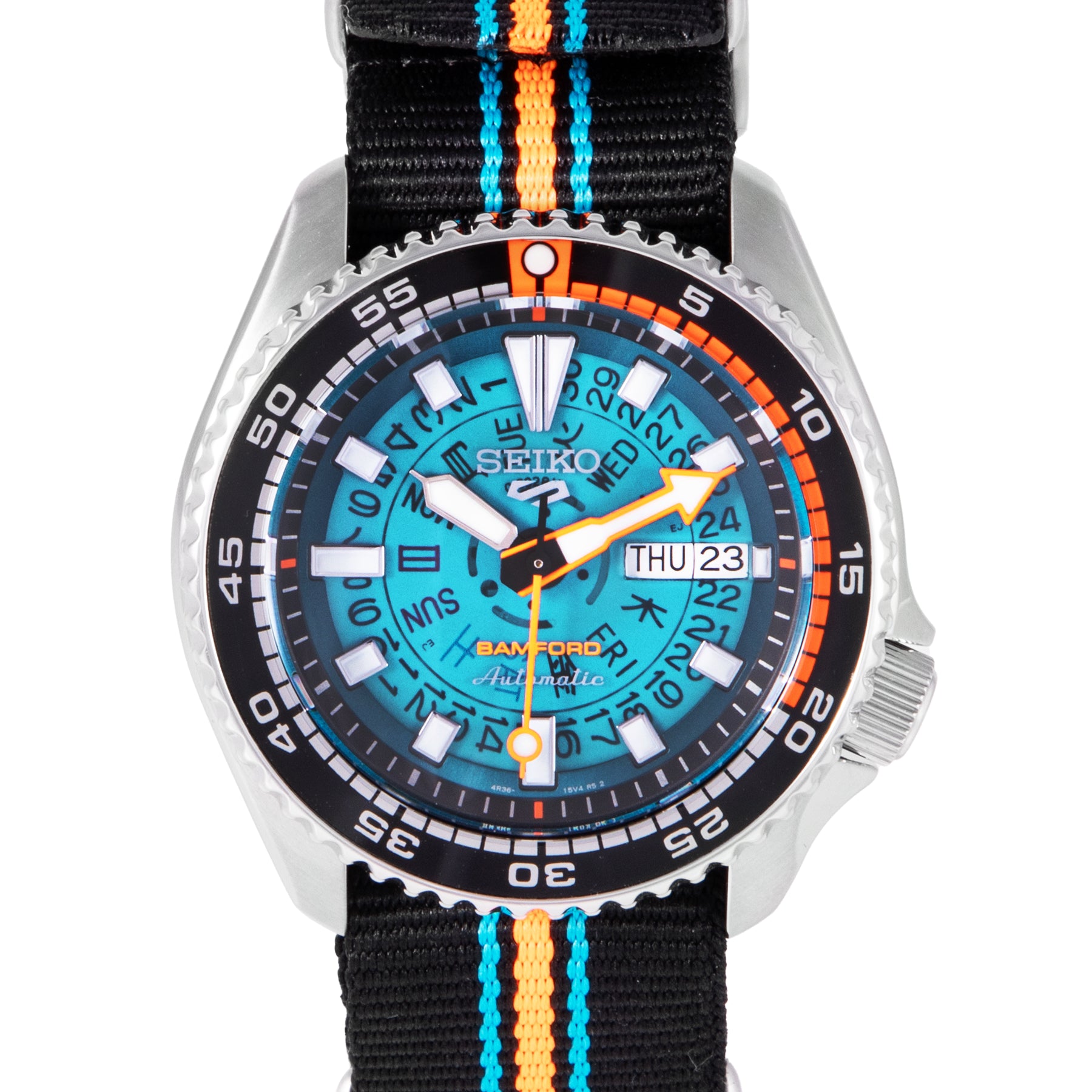 This Seiko 5 Sports SKX Series 42.5mm, steel case, blue dial, steel bezel and black nylon strap in an unworn condition. This watch is Limited Edition of 2025 pieces only. Mechanised by Seiko calibre 4R36 automatic with manual movement. Includes box and sales warranty card dated October 2025.