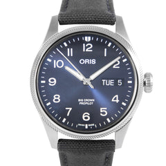 This Pre-owned Oris Big Crown Propilot Big Day Date 44mm, steel case, blue dial, steel bezel and black leather strap in excellent condition. Mechanized by Oris calibre 752 automatic movement. Includes box, manual book and 2 years TImepiece360 warranty.