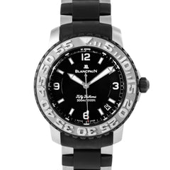 This Pre-owned Blancpain Fifty Fathoms 40.5mm, steel & rubber case, black dial, steel bezel, and steel & rubber bracelet with 24 links is in very good condition. Mechanised by Blancpain calibre 1151 automatic movement. Includes box, Blancpain sales warranty card dated December 2008, and 2 years Timepiece360 warranty.