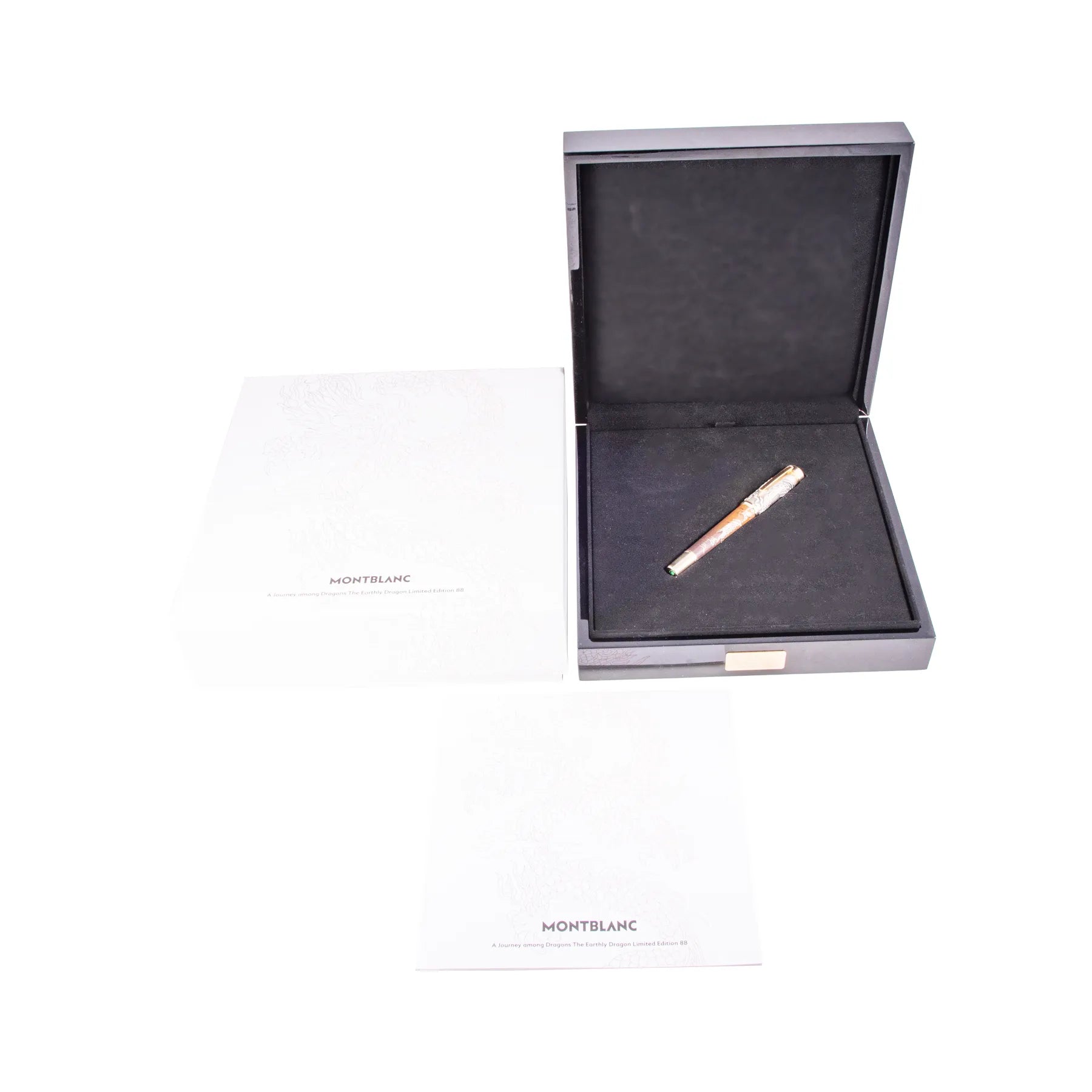 The Montblanc *A Journey Among Dragons — The Earthly Dragon* Limited Edition fountain pen features exquisite craftsmanship inspired by mythical lore and cultural artistry. Its richly detailed design showcases premium materials and artistic motifs that celebrate the dragon theme with elegance and depth. The balanced weight and smooth nib deliver a luxurious, refined writing experience prized by collectors and enthusiasts. As a limited edition, this pen blends storytelling with Montblanc’s heritage of fine writing instruments.