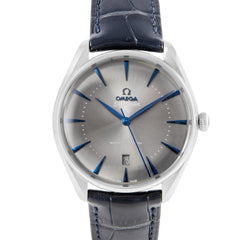 This Pre-owned Omega Seamaster Boutique UAE Limited Edition 39.5mm, steel case, grey dial, steel bezel and blue leather strap is in excellent condition. Mechanised by Omega calibre 8800 automatic movement. Includes box and Omega sales warranty card dated November 2024.