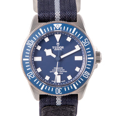 This Pre-owned Tudor Pelagos FXD 42mm, titanium case, blue dial, titanium bezel and blue nylon strap is in excellent condition. Mechanised by Tudor calibre MT5602 automatic movement. Includes box and Tudor sales warranty card dated April 2022.