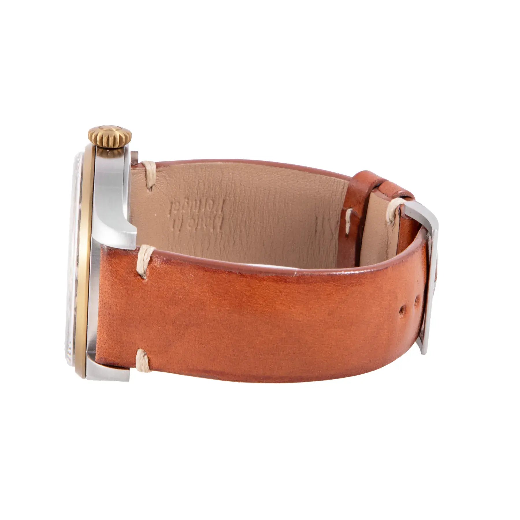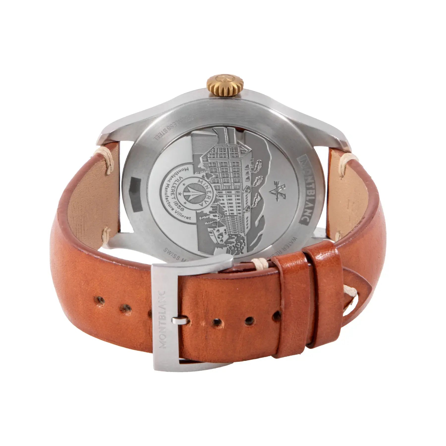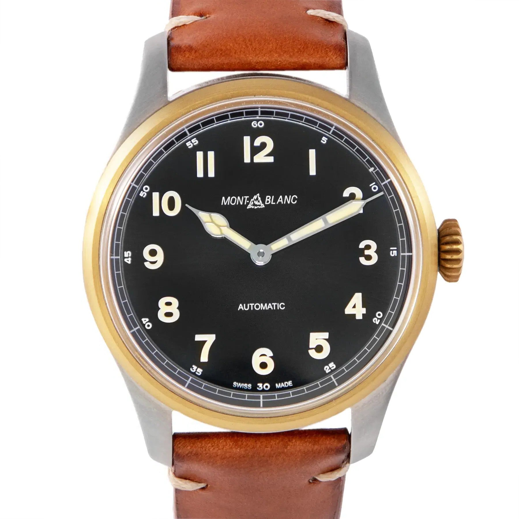 This Pre-owned Montblanc Minerva Villeret 44mm, steel case, black dial, bronze bezel and brown leather strap is in excellent condition. Mechanised by Montblanc calibre MB 2415 automatic movement. Includes box, sales warranty card dated April 2021 and 2 years Timepiece360 warranty.