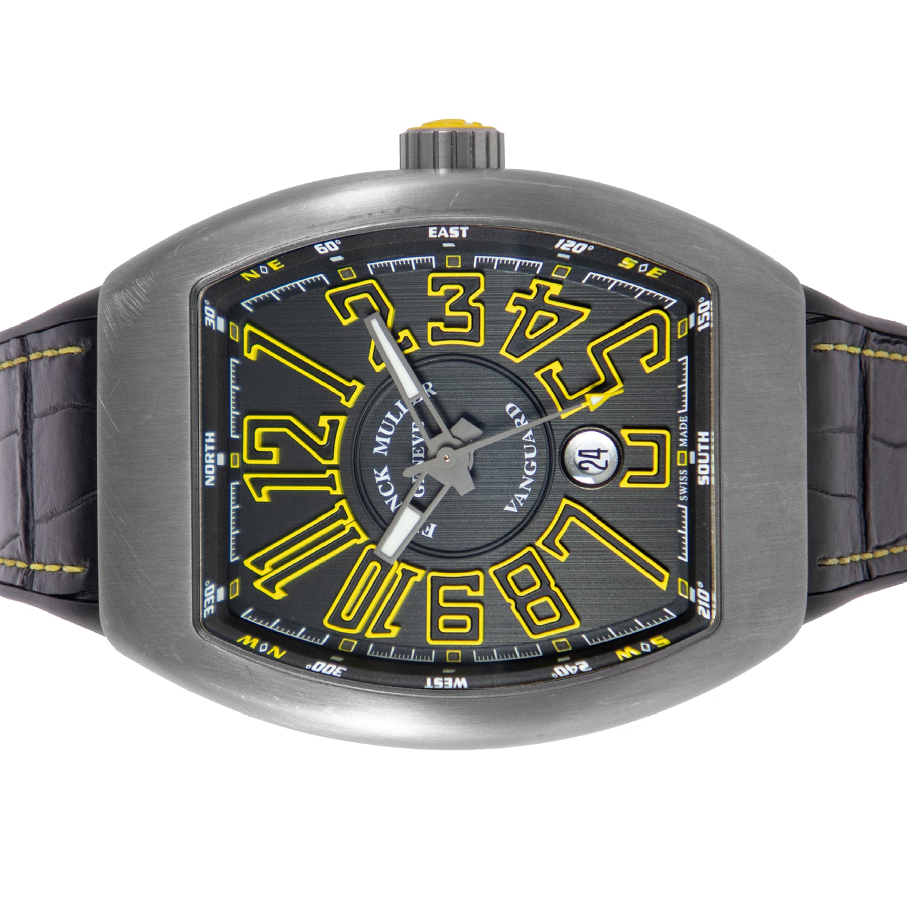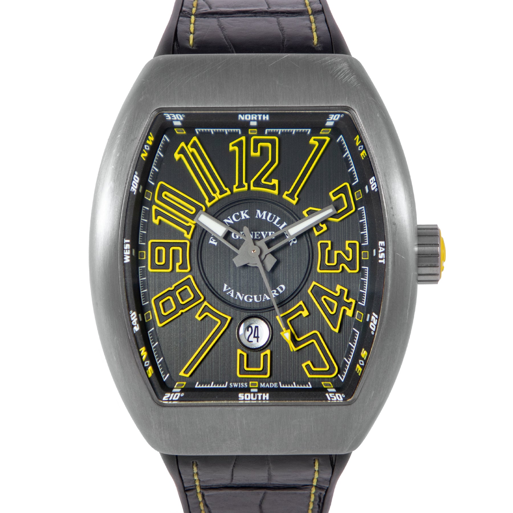 This Pre-owned Franck Muller Vanguard 58mm × 43mm, titanium case, black dial, titanium bezel and black rubber strap is in very good condition. Mechanised by Franck Muller calibre SW300-1 automatic movement. Includes box, Franck Muller sales warranty card dated October 2022 and 2 years Timepiece360 warranty.