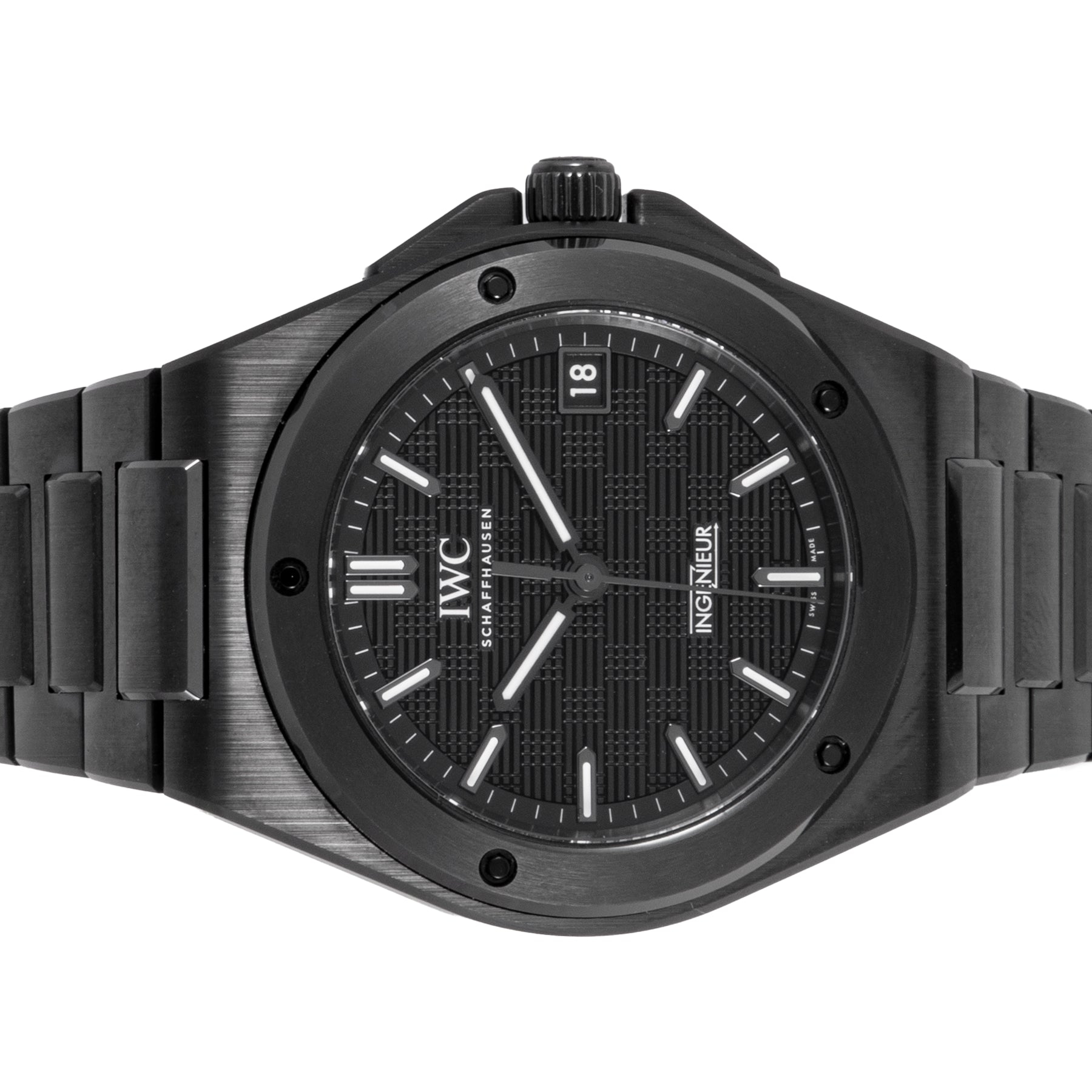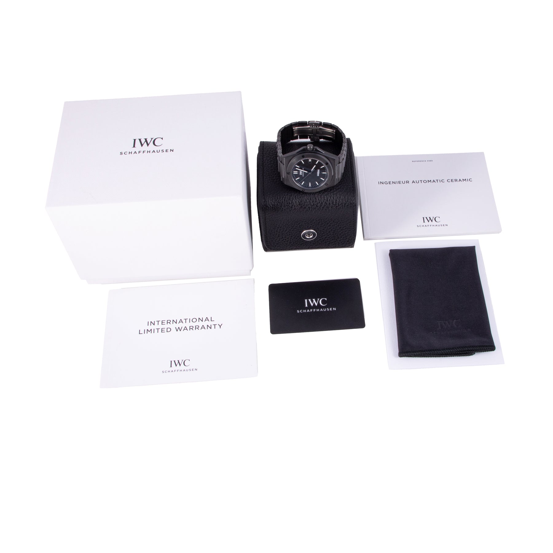 This IWC Ingenieur 42mm, ceramic case, black dial, ceramic bezel and ceramic bracelet with 19 links in an unworn condition. Mechanised by IWC calibre 82110 automatic movement. Includes box, extra link without pin and IWC sales warranty card dated May 2025.