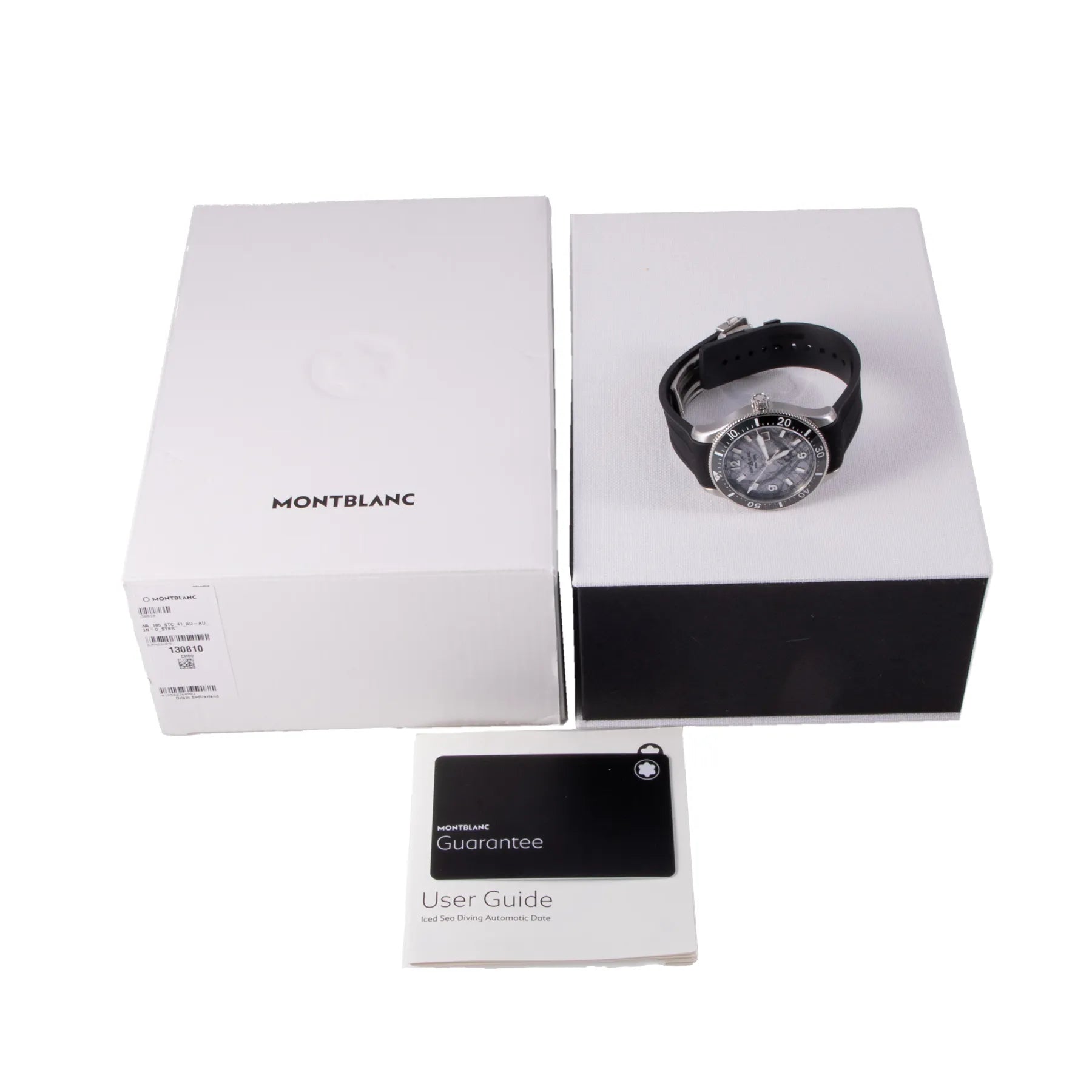 This Montblanc 1858 Iced Sea 41mm, steel case, grey dial, ceramic bezel and black rubber strap in an unworn condition. Mechanised by Montblanc calibre MB 24.17 automatic movement. Includes box, undated sales warranty card and 2 years Timepiece360 warranty.