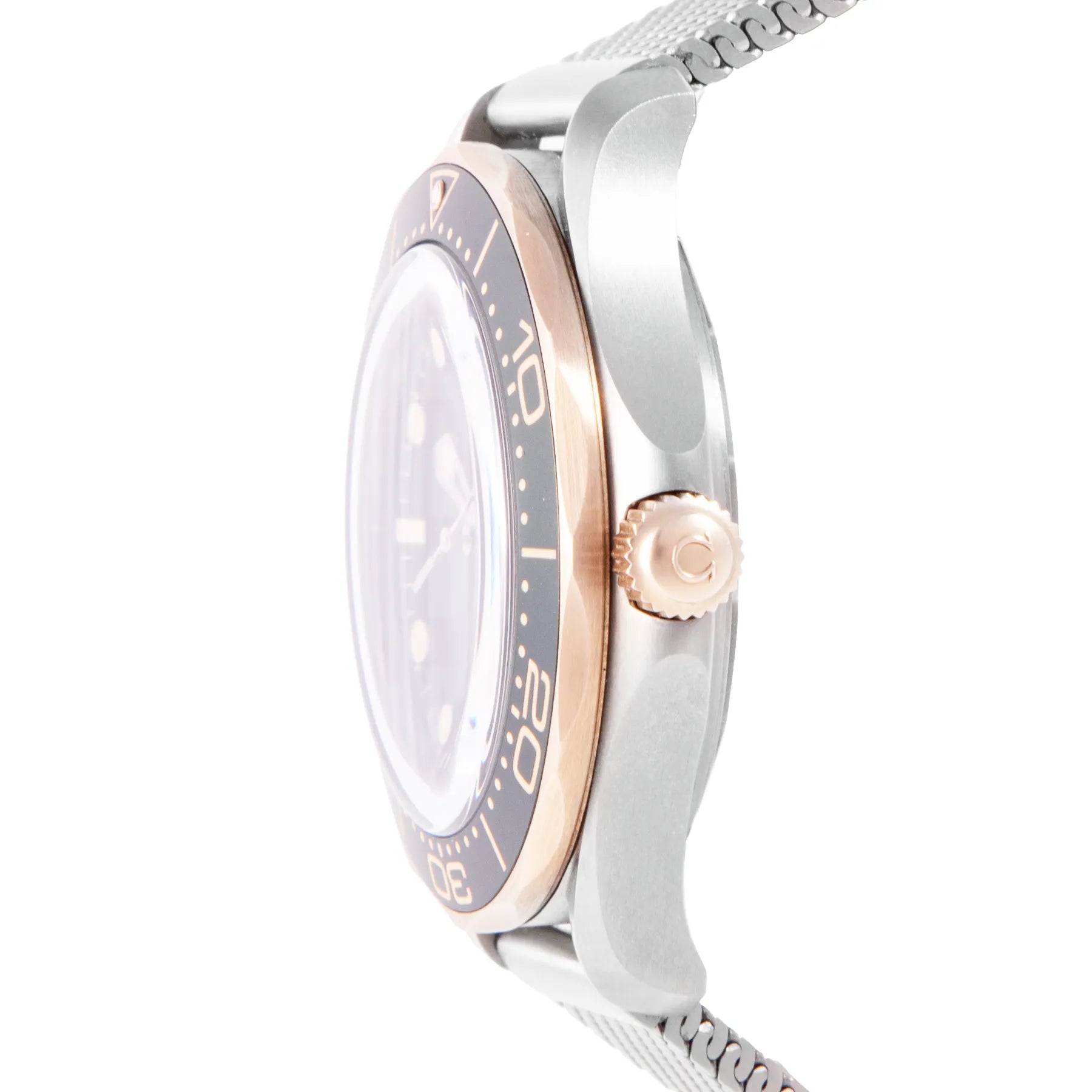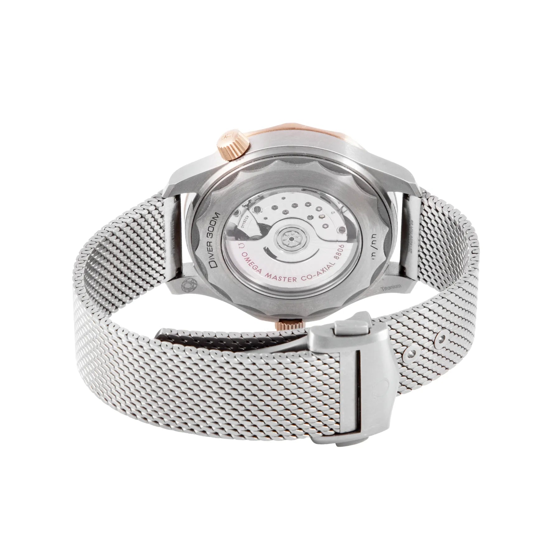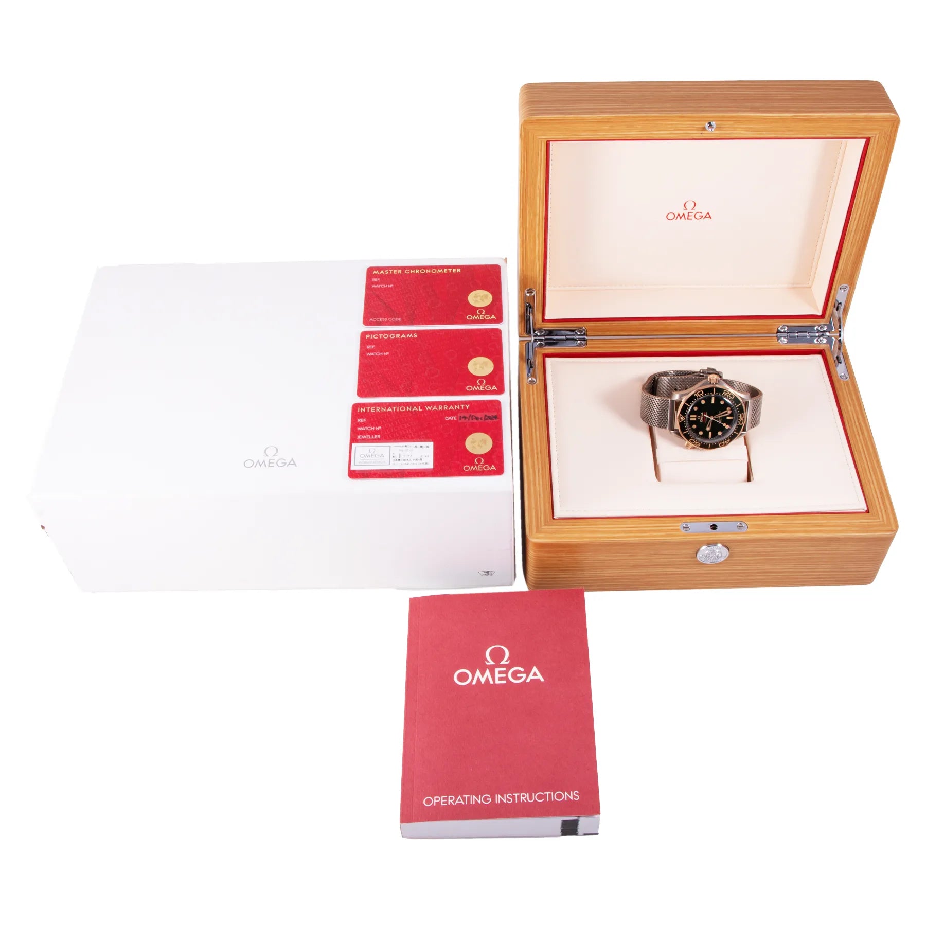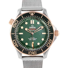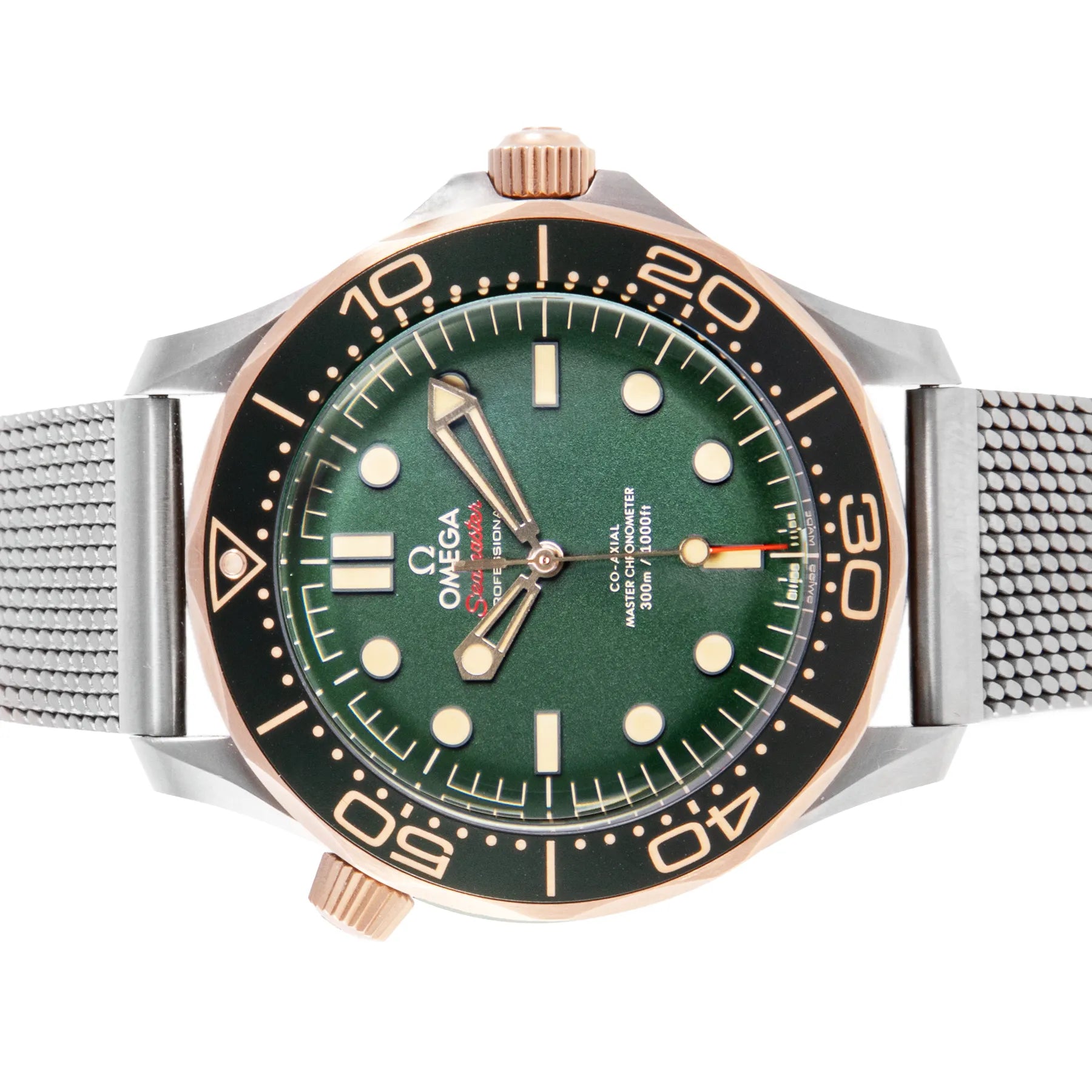 This Pre-owned Omega Seamaster Diver 300M 42mm, steel & bronze gold case, green dial, aluminium bezel and titanium bracelet is in very good condition. Mechanised by Omega calibre 8806 automatic movement. Includes box and sales warranty card dated December 2024.