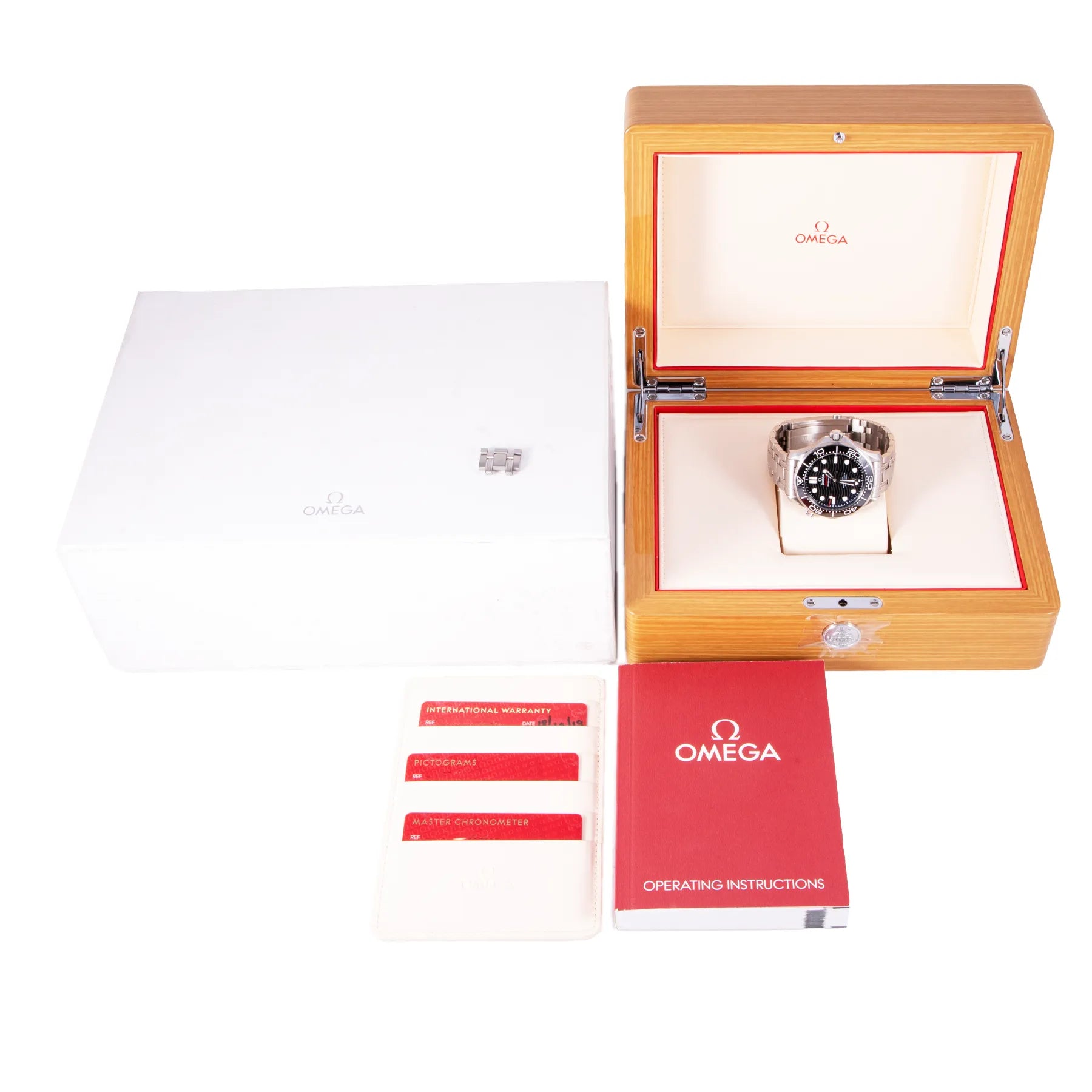 This Pre-owned Omega Seamaster Diver 300M 42mm, steel case, black dial, ceramic bezel and steel bracelet with 11.5 links is in very good condition. Mechanised by Omega calibre 8800 automatic movement. Includes box, sales warranty card dated October 2019 and 2 years Timepiece360 warranty.