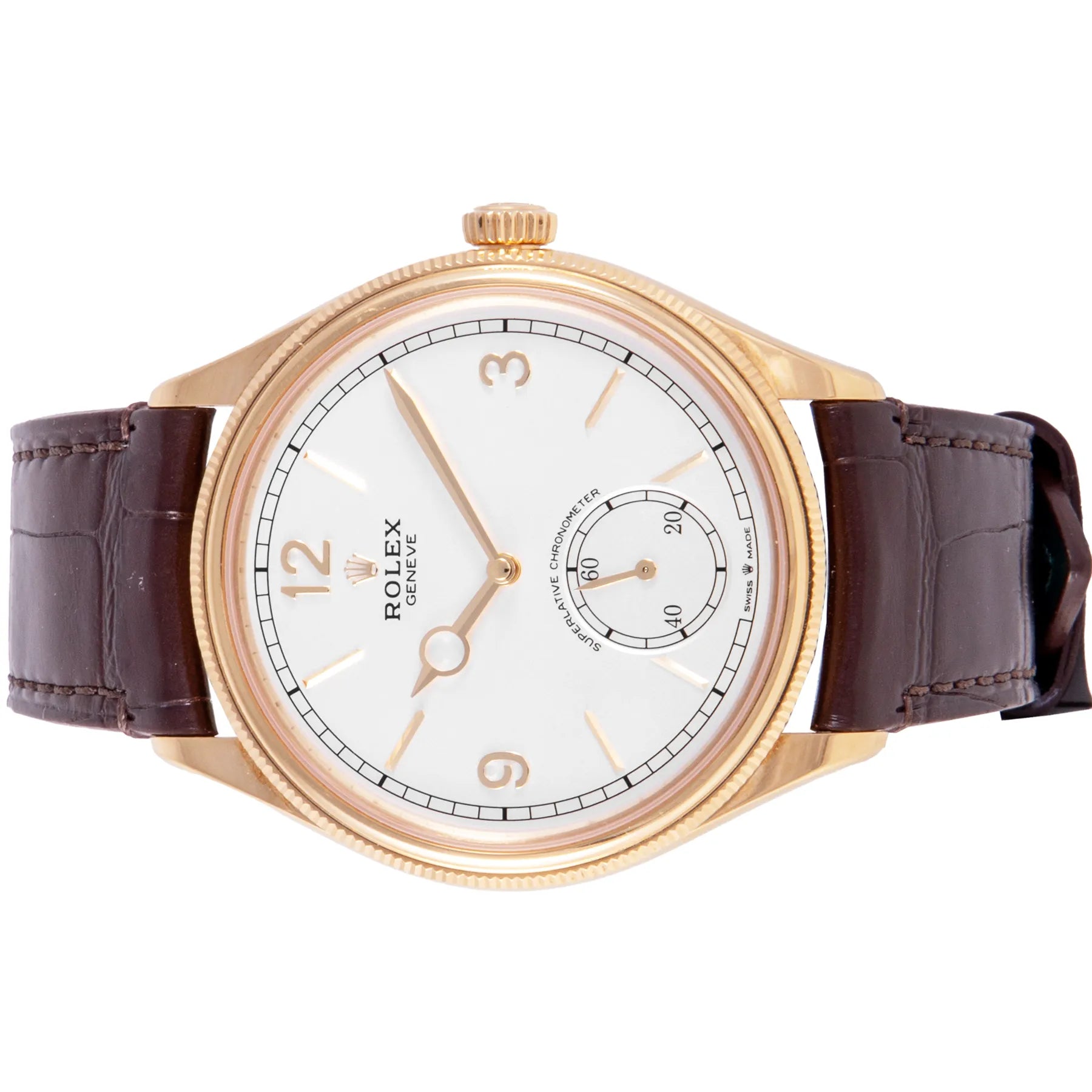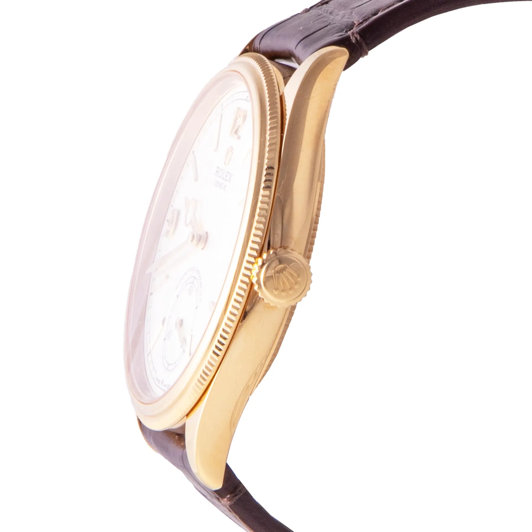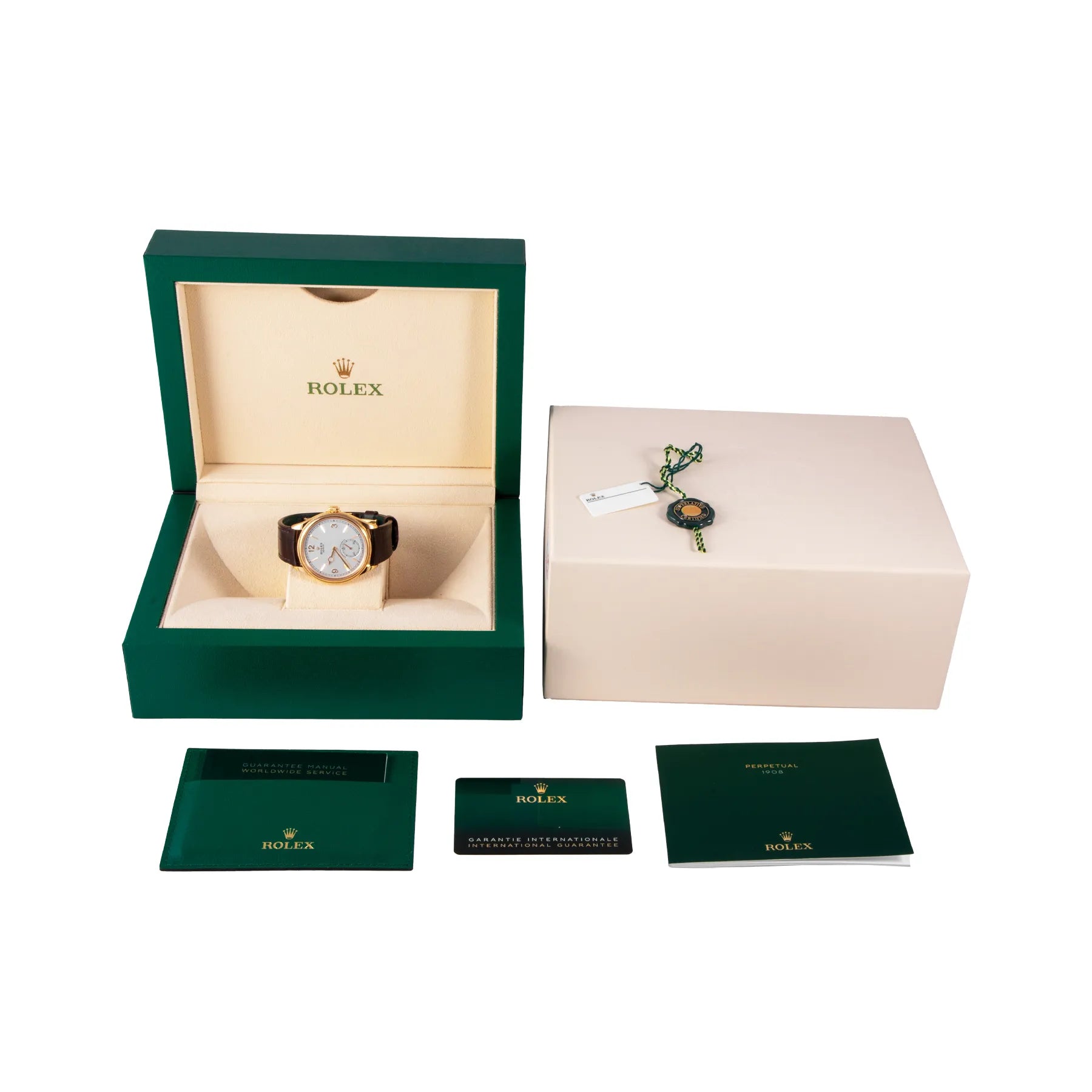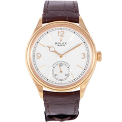This Pre-owned Rolex 1908 39mm, yellow gold case, white dial, yellow gold bezel and brown leather strap is in very good condition. Mechanised by Rolex calibre 7140 automatic movement. Includes box and Rolex sales warranty card dated October 2024.