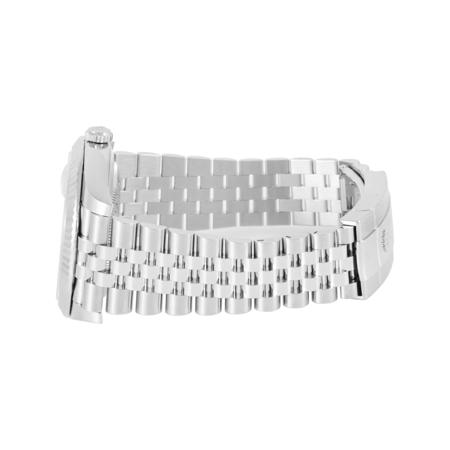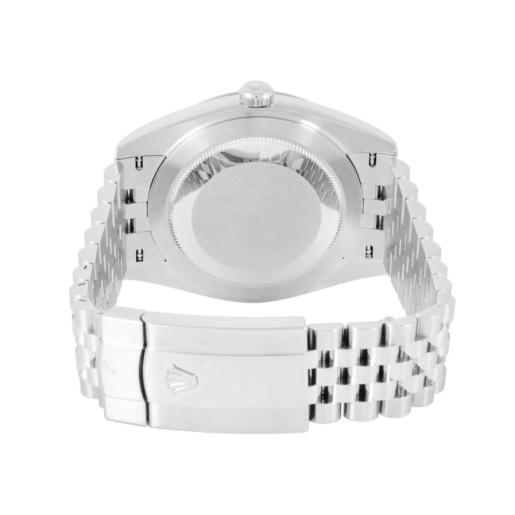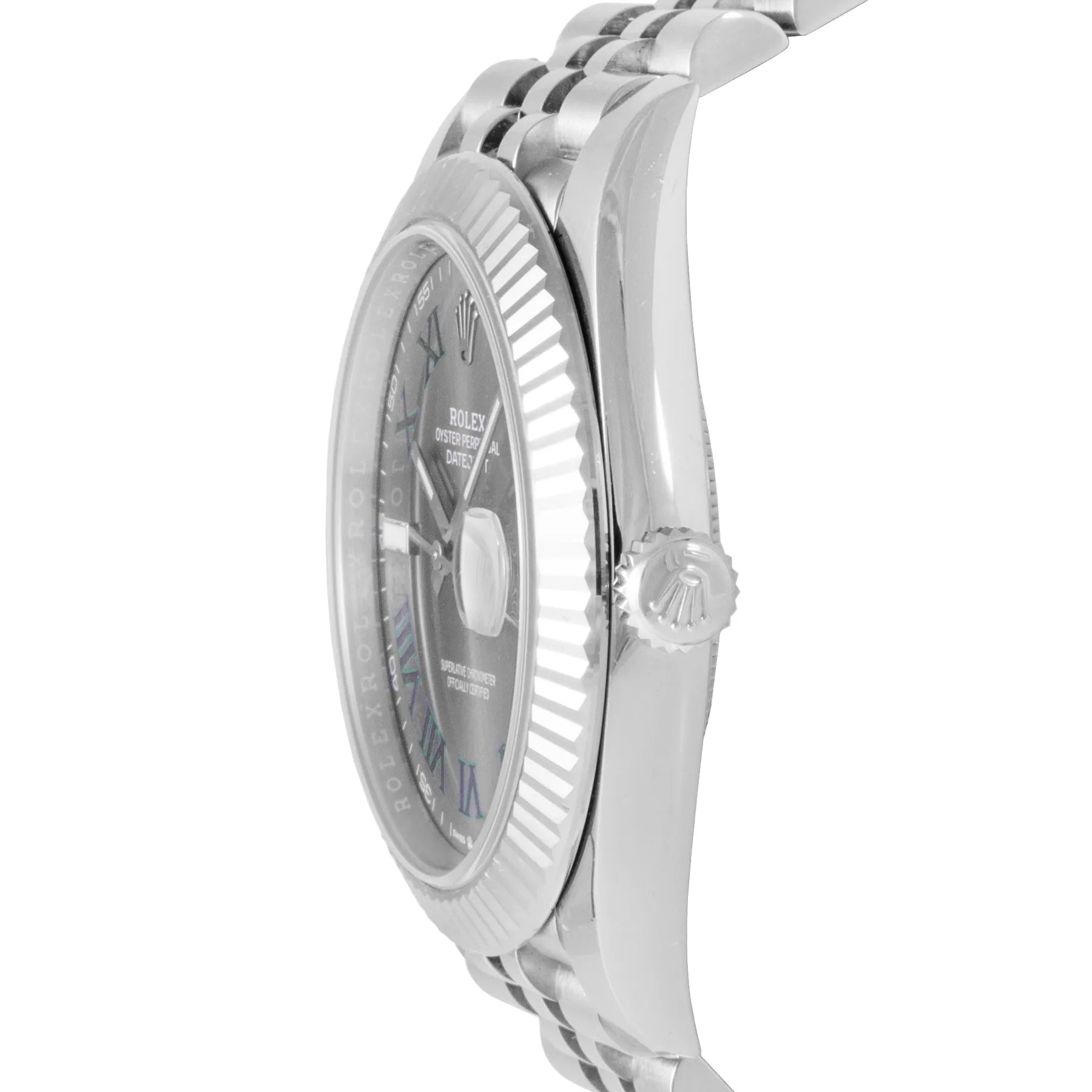 This Pre-owned Rolex Datejust "Wimbledon" 41mm, steel case, slate grey dial, white gold bezel and steel jubilee bracelet with 20 links is in very good condition. Mechanised by Rolex calibre 3235 automatic movement. Includes box and Rolex sales warranty card dated November 2023.