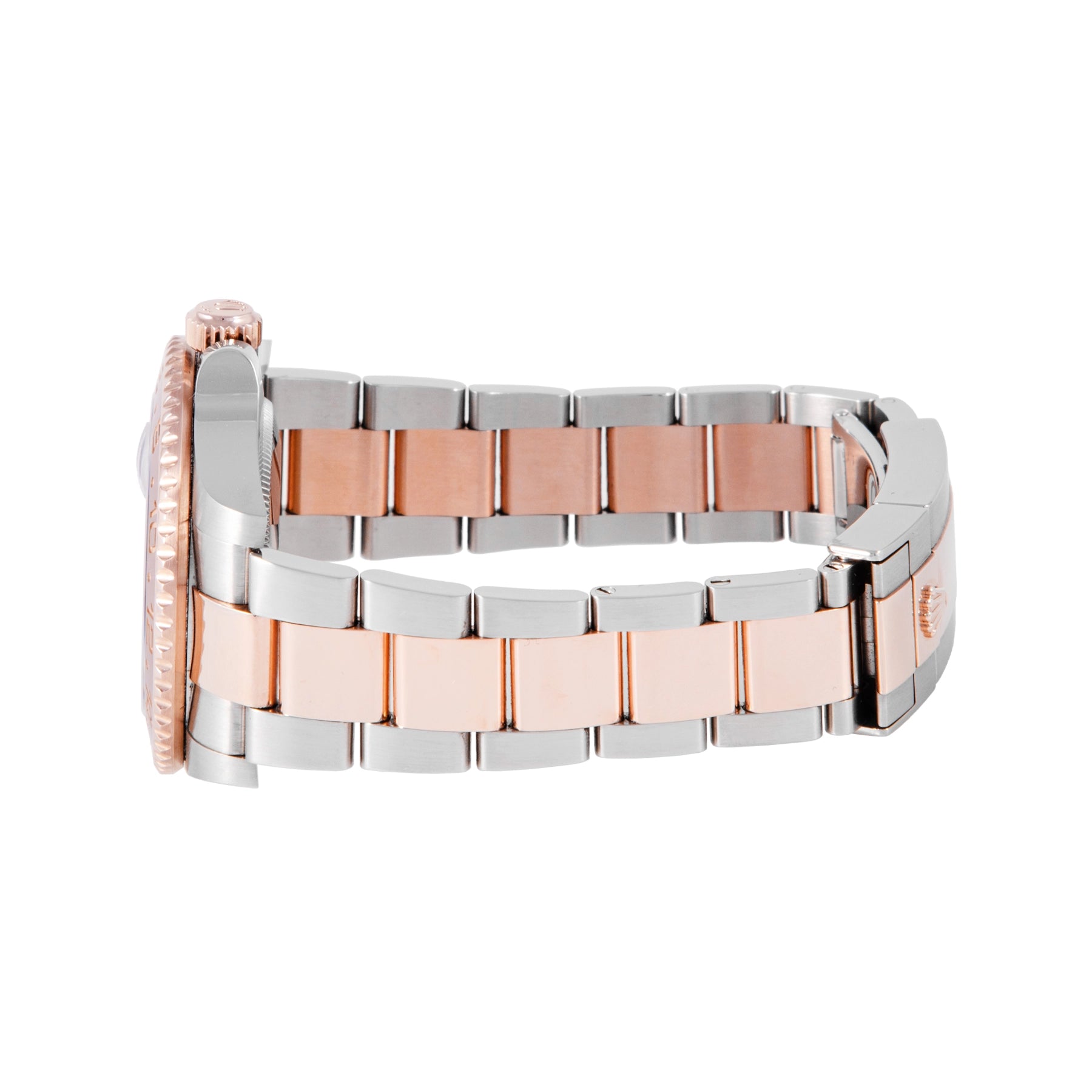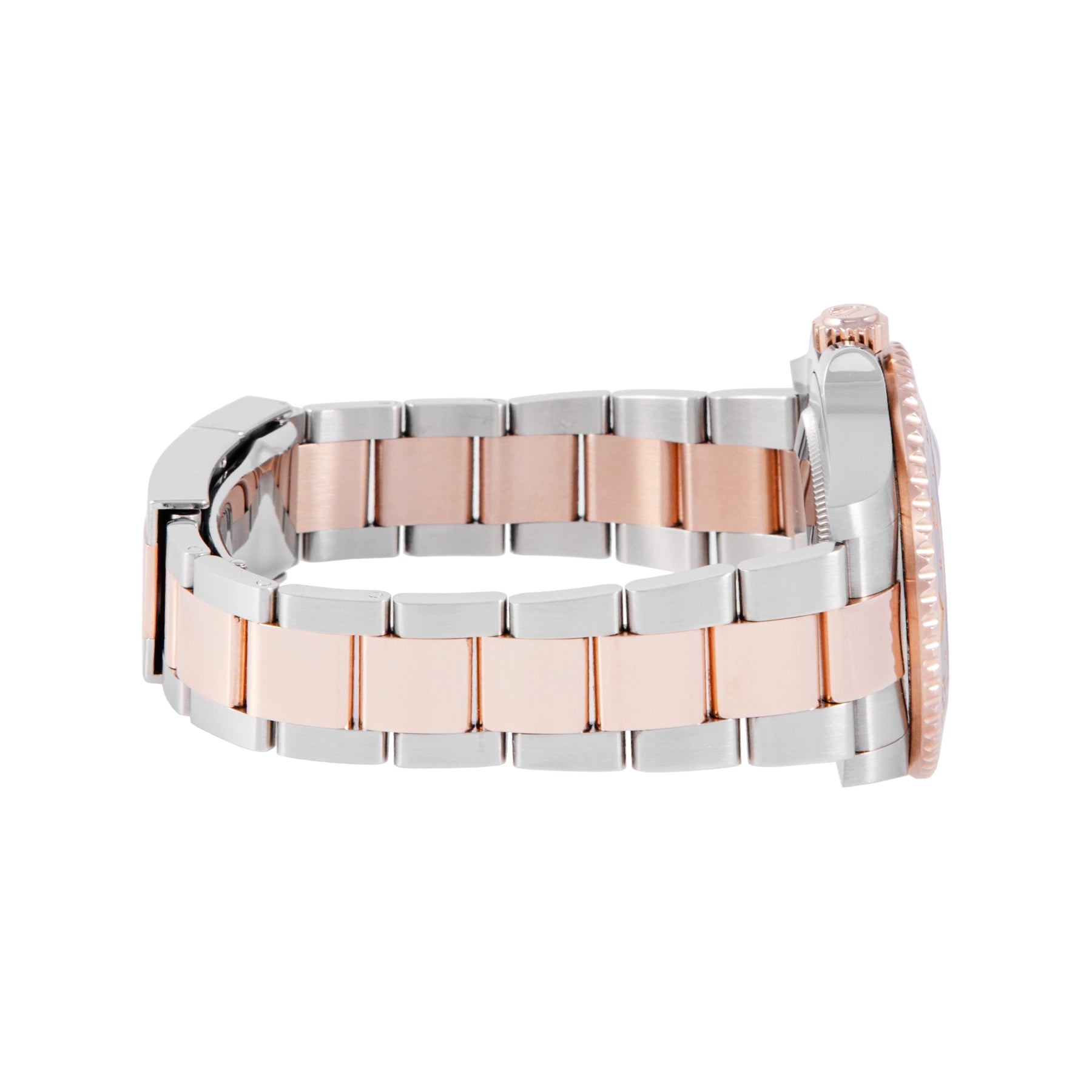 This Pre-owned Rolex GMT Master II "Root Beer" 40mm, steel & rose gold case, black dial, ceramic bezel and steel & rose gold oyster bracelet with 12 links is in very good condition. Mechanised by Rolex calibre 3285 automatic movement. Includes box and Rolex sales warranty card dated June 2024.