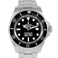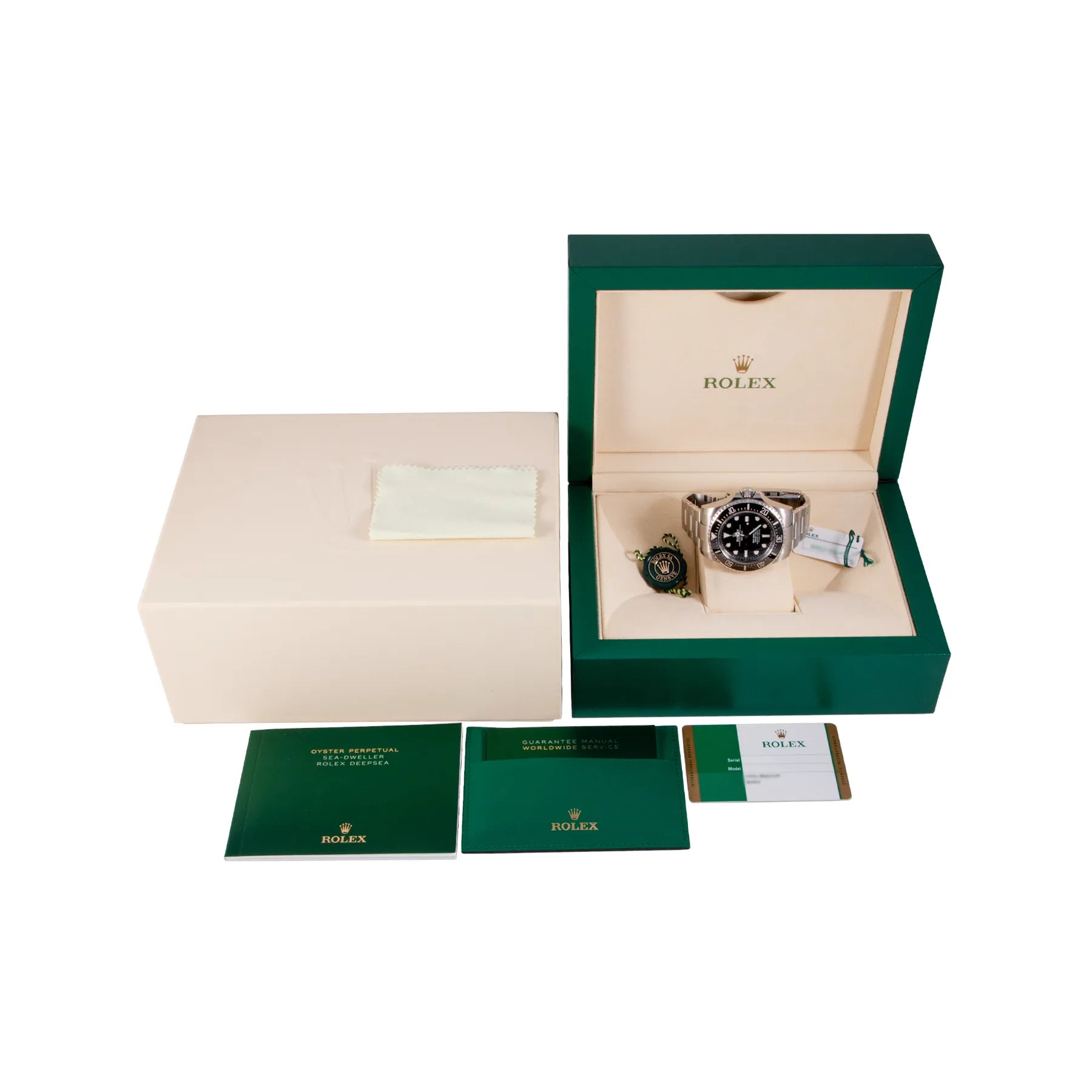This Pre-owned Rolex Sea-Dweller 43mm, steel case, black dial, ceramic bezel and steel oyster bracelet with 9 links is in very good condition. Mechanised by Rolex calibre 3235 automatic movement. Includes box, sales warranty card dated April 2019 and 2 years Timepiece360 warranty.