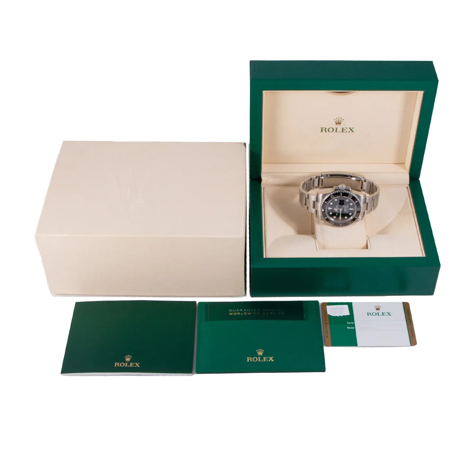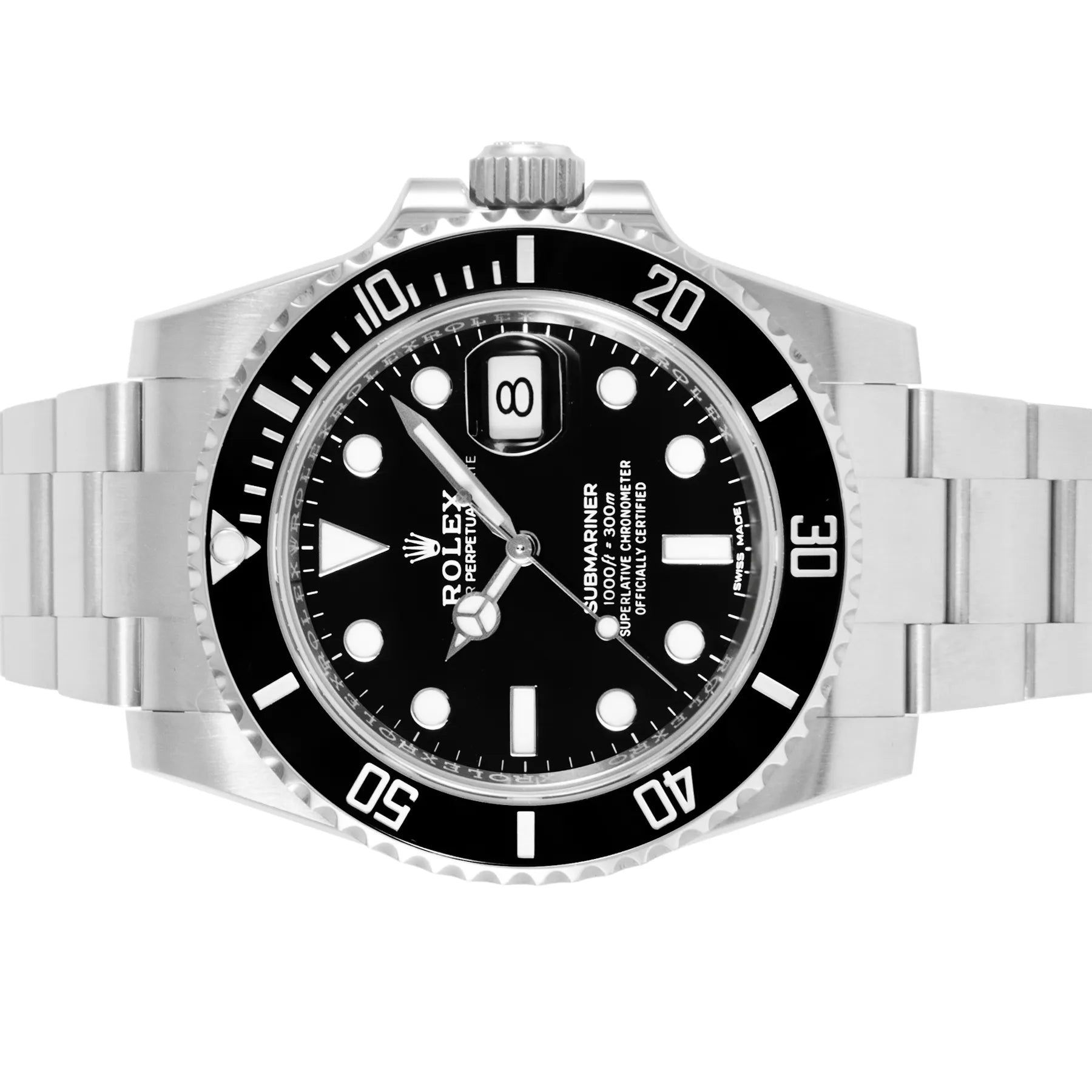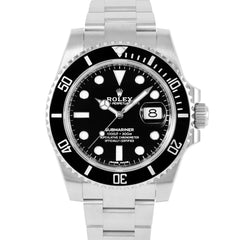 This Pre-owned Rolex Submariner Date 40mm, steel case, black dial, ceramic bezel and steel oyster bracelet with 10.5 links is in excellent condition. Mechanised by Rolex calibre 3135 automatic movement. Includes box, sales warranty card dated April 2019 and 2 years Timepiece360 warranty.