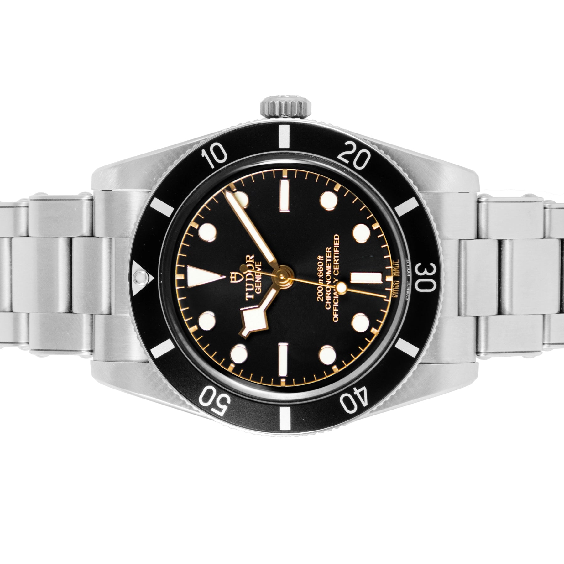 This Pre-owned Tudor Black Bay 54 37mm, steel case, black dial, aluminium bezel and steel bracelet with 12 links is in very good condition. Mechanised by Tudor calibre MT5400 automatic movement. Includes box and sales warranty card dated March 2025.