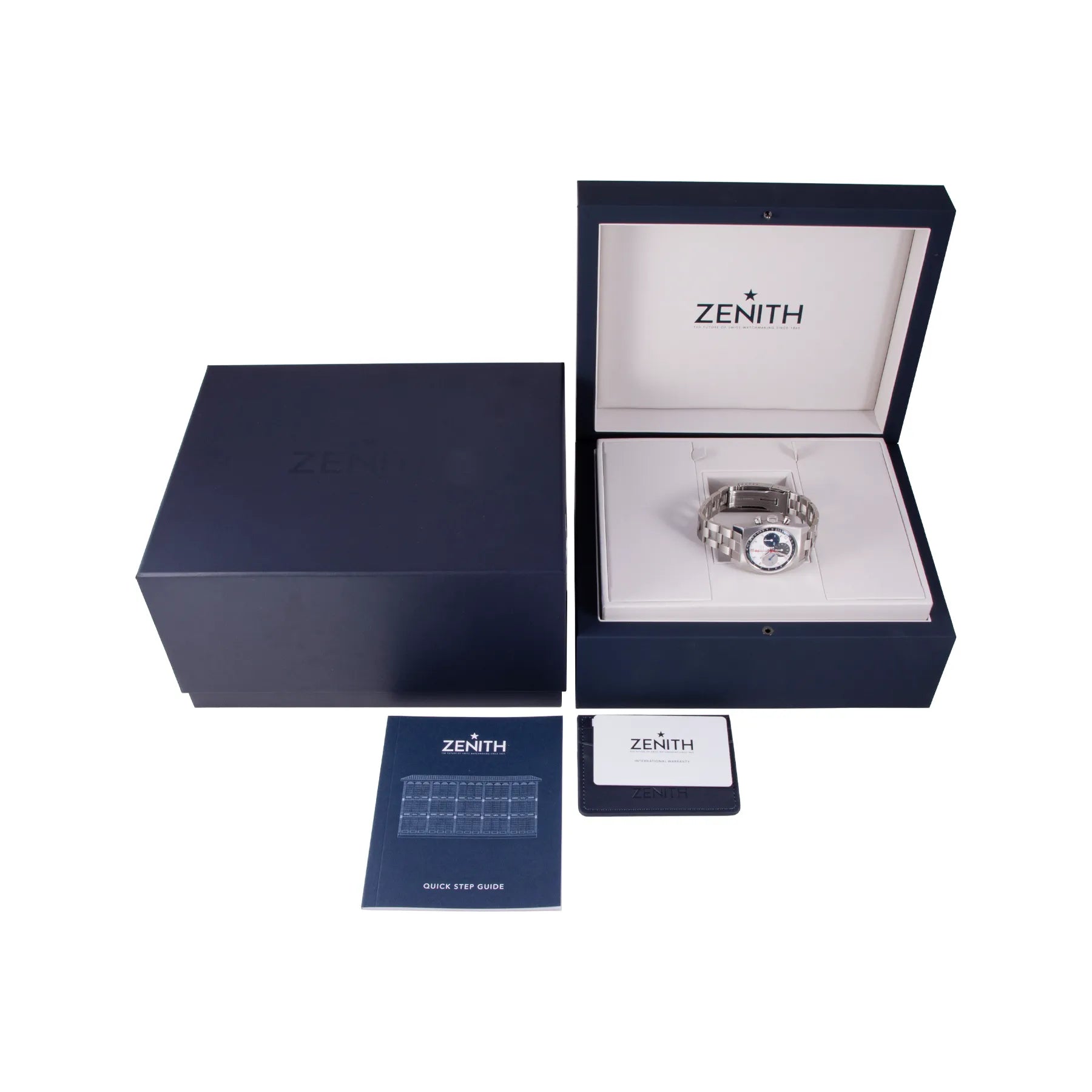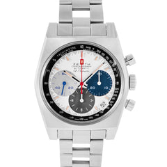 This Pre-owned Zenith Chronomaster Revival El Primero 37mm, steel case, white dial, steel bezel and steel bracelet with 11.5 links is in excellent condition. Mechanised by Zenith calibre 400 automatic movement. Includes box and sales warranty card dated August 2025.