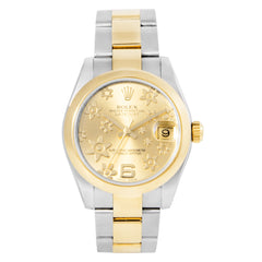 This Pre-owned Rolex Datejust 31mm, steel & yellow gold case, champagne dial, yellow gold bezel and steel & yellow gold bracelet with 9 links is in very good condition. Mechanized by Rolex 2235 automatic movement. Includes box and Rolex sales warranty card dated May 2016 and 2 years Timepiece360 warranty.