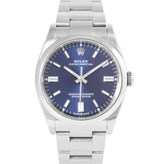 This Pre-owned Rolex Oyster Perpetual 36mm, steel case, steel bezel, blue dial, steel oyster bracelet with 12 links is in very good condition. Mechanised by Rolex calibre 3235 automatic movement. Includes box and Rolex sales warranty card dated February 2023.