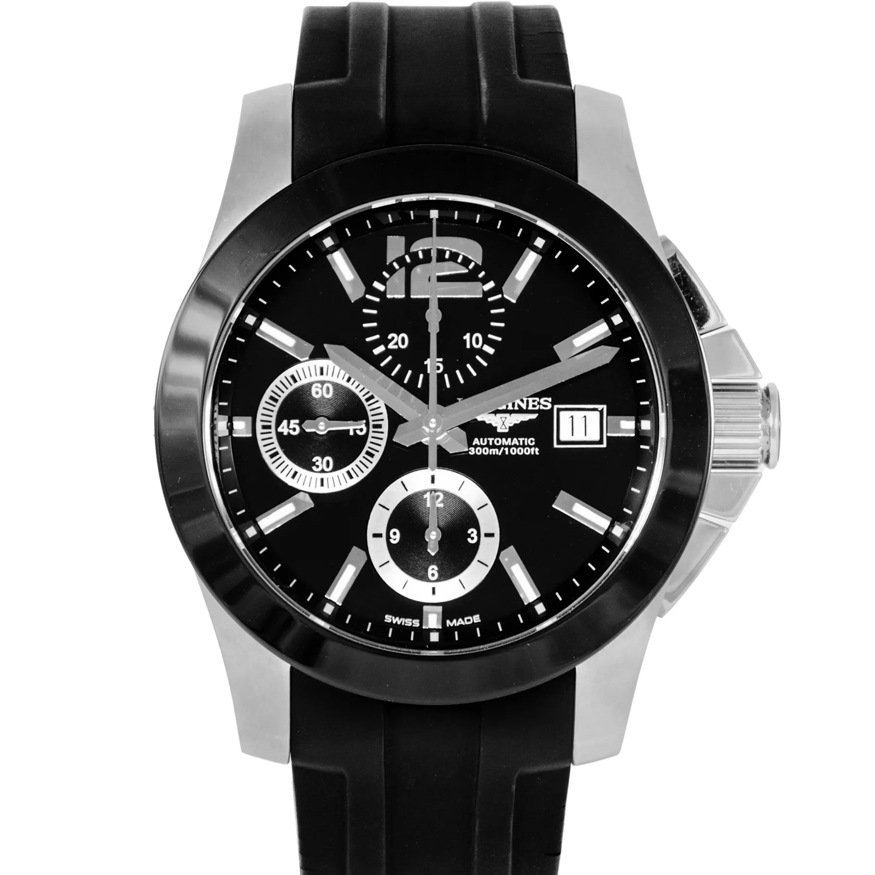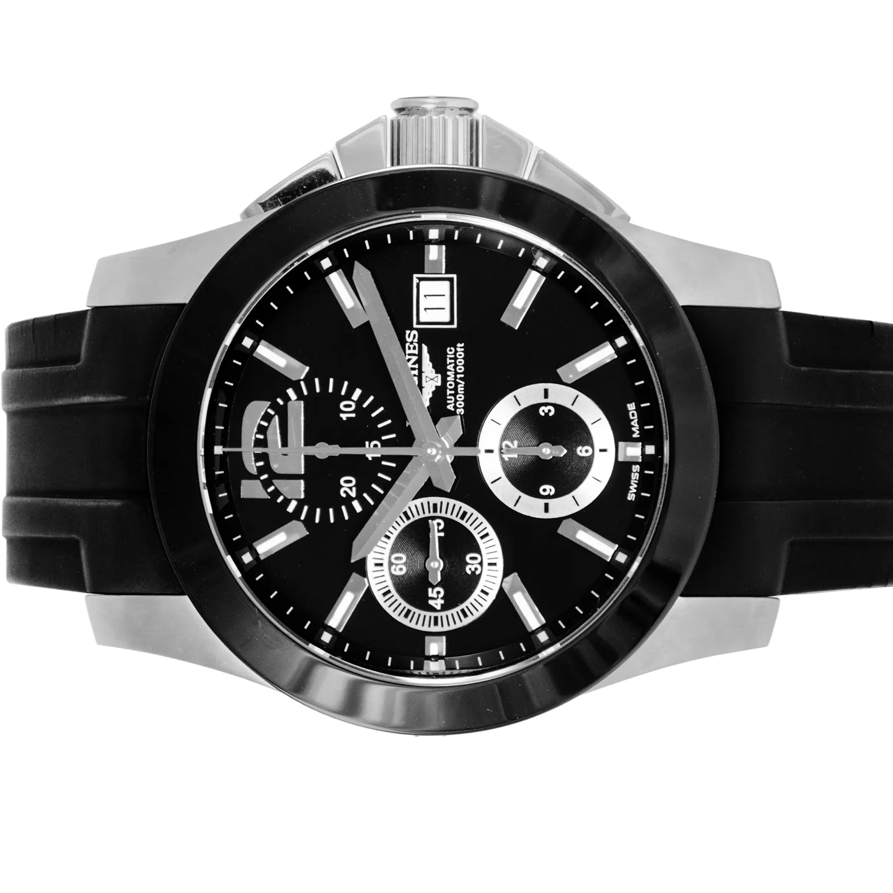This Preowned Longines Conquest 41mm, steel case, black dial, ceramic bezel and black rubber strap is in very good condition. Mechanised by Longines calibre L667.2 automatic movement. Include 2 years Timepiece360 warranty.
