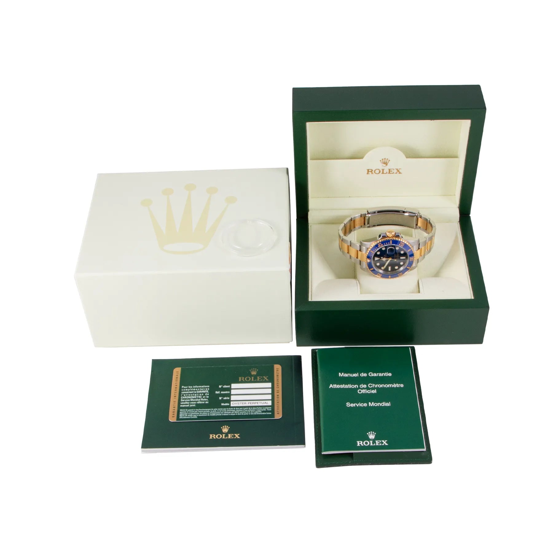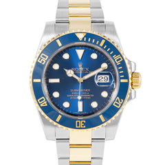 This Pre-owned Rolex Submariner Date 40mm steel & yellow gold case, blue dial, ceramic bezel and steel & yellow gold oyster bracelet with 11 links is in excellent condition. Mechanised by Rolex calibre 3135 automatic movement. Includes box, Rolex sales warranty card dated August 2013, and 2 years Timepiece360 warranty.